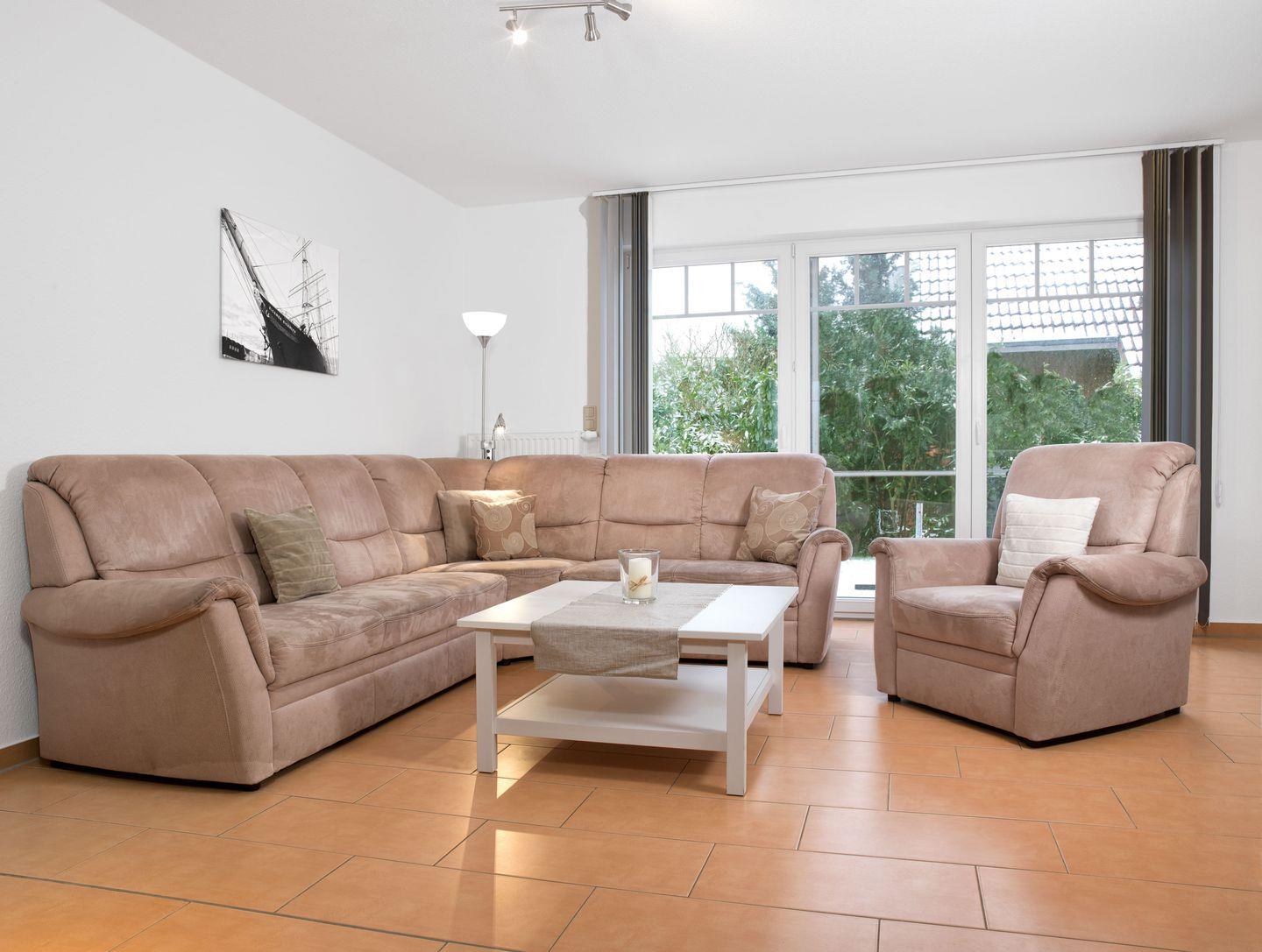 Ihr Urlaubsdomizil ist ein Endreihenferienhaus (nur 3 Einheiten) mit ca. 83m² verfügt im Erdgeschoss über einen mit viel Geschmack eingerichteten großzügigen Wohnraum mit separater Essecke und moderner Einbauküche.
