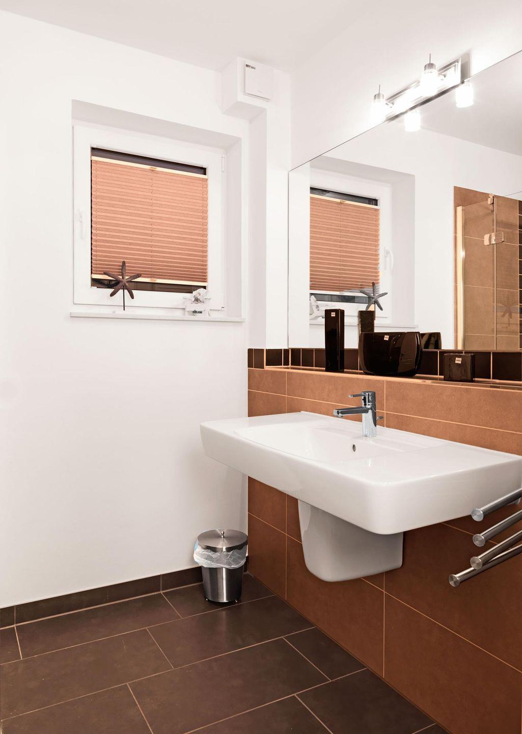 Das hübsche Bad verfügt über eine Dusche und WC.