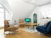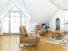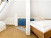Das großzügige Schlafzimmer liegt im Spitzboden über dem Wohnzimmer.