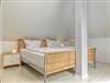 Das großzügige Schlafzimmer liegt im Spitzboden, hier finden Sie ein Doppelbett und einen begehbaren Kleiderschrank.