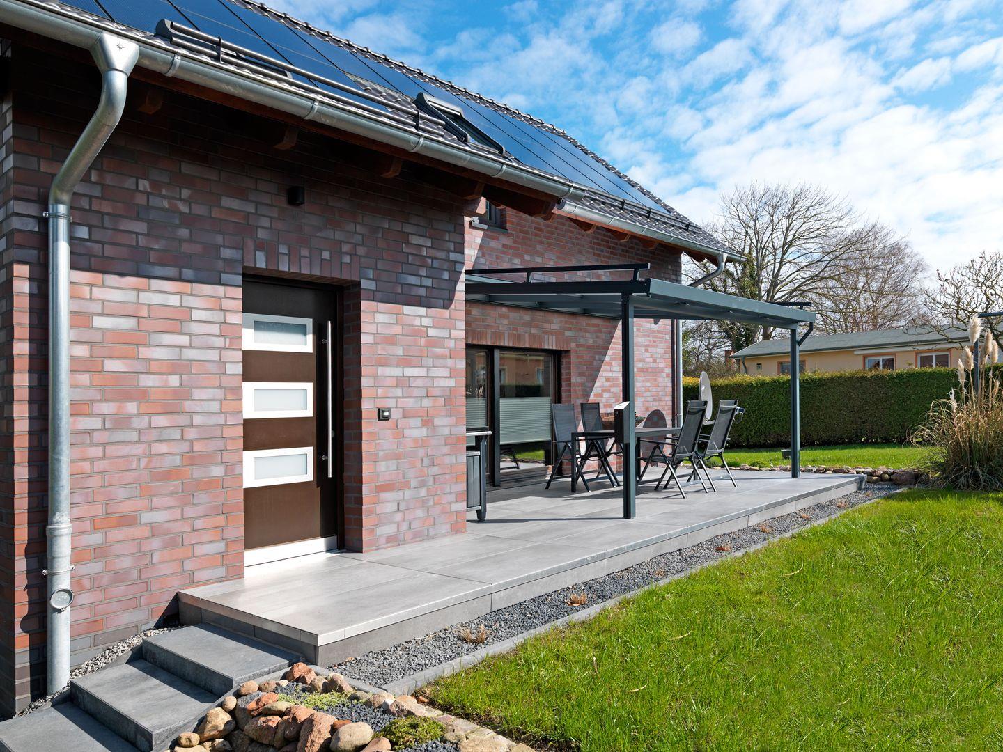 Die überdachte Terrasse mit Gartenmöbeln, Grill, Schaukel und Blick ins Grüne lädt Sie ein: zum lesen, grillen oder toben.