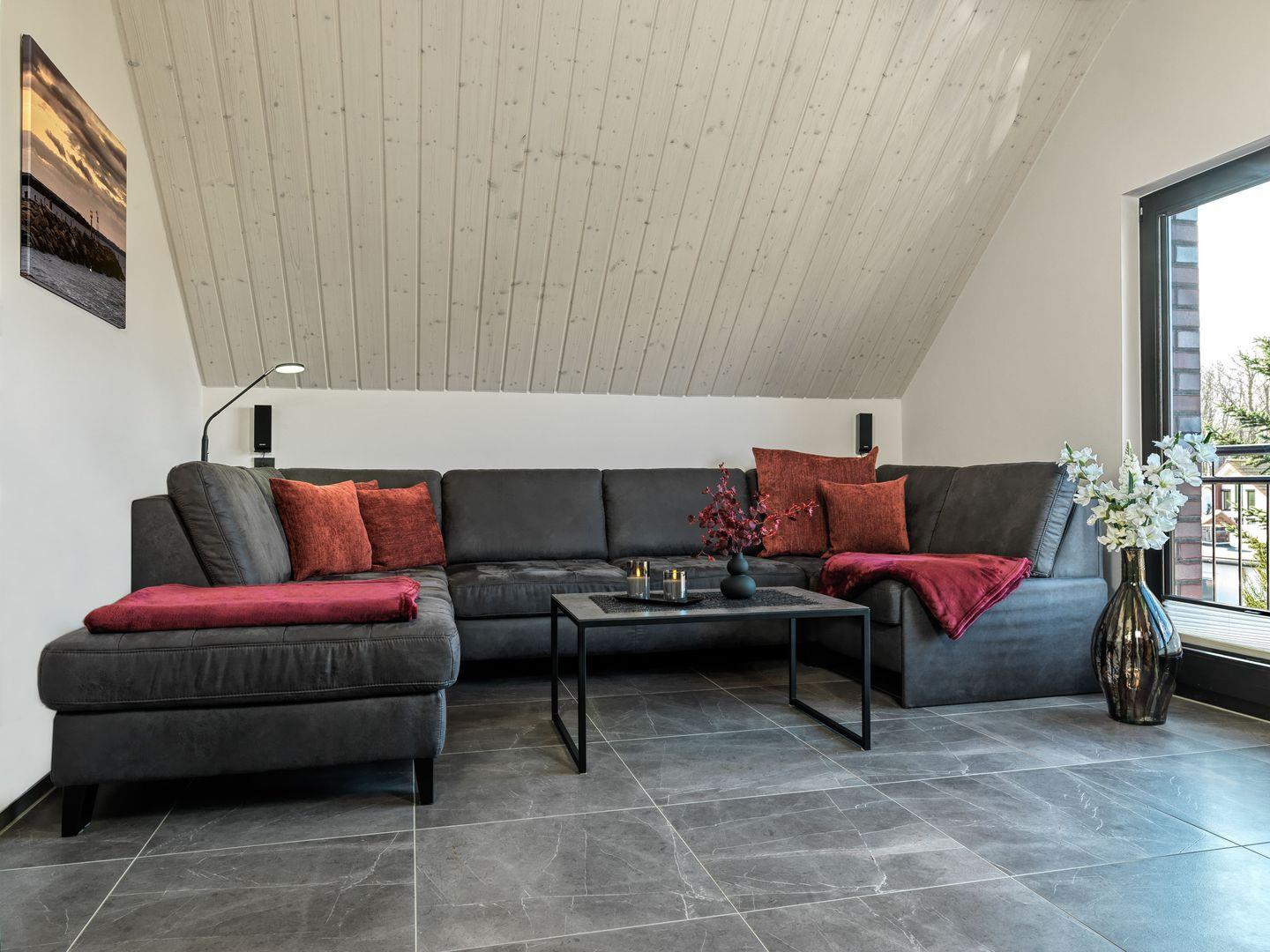 Im OG befindet sich ein Schlafzimmer mit Doppelbett, ein Bad mit Badewanne sowie ein geräumiges Wohnzimmer mit einer gemütlichen Sitzecke mit TV/DVD und kostenlos Netflix.