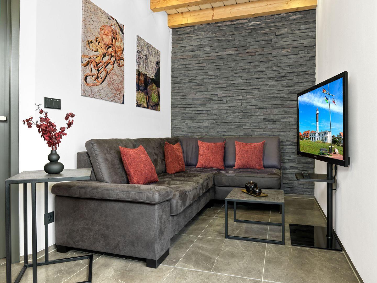 Der große Wohnbereich mit einem schönen Essplatz und Couchecke sowie TV macht Ihren Urlaub zu etwas Besonderem. Dieser Bereich lädt vor allem Familien mit Kindern zum gemeinsamen Verweilen ein. Brettspiele sind vorhanden.