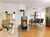 Ein großes Wohnzimmer mit offener Küche, Kaminofen und Schlafcouch erwarten Sie.