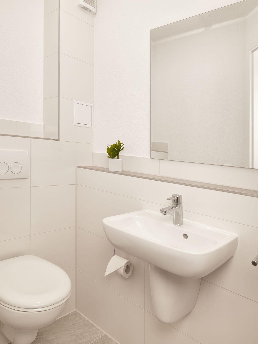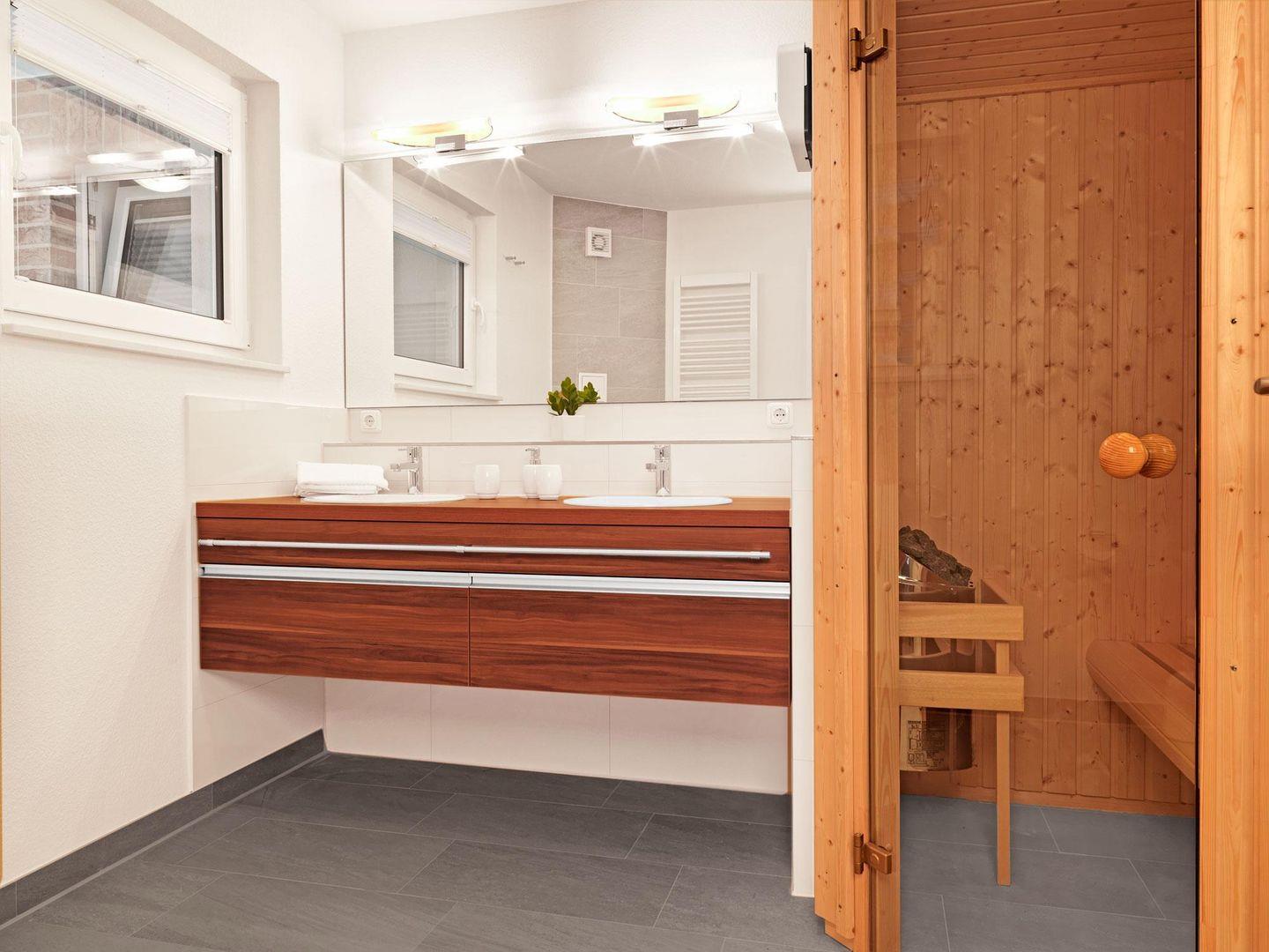 Zwei geräumige Schlafzimmer mit Doppelbetten sowie ein großzügiges Bad mit Sauna und ein Gäste-WC lassen bis zu 6 Personen einen entspannten Urlaub verleben.