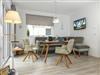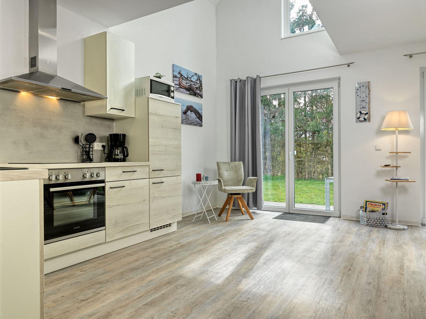 Das Haus besticht durch ein offenes Wohnkonzept, ein Wohnbereich mit einem großem Fernseher und gemütlicher Eckbank/Sitzgruppe sowie offener Küche mit direktem Zugang zur Terrasse. Die Küche ist mit modernen Geräten wie Herd, Backofen, Geschirrspüler und Kühlschrank ausgestattet – hier wird das Kochen zum Vergnügen!