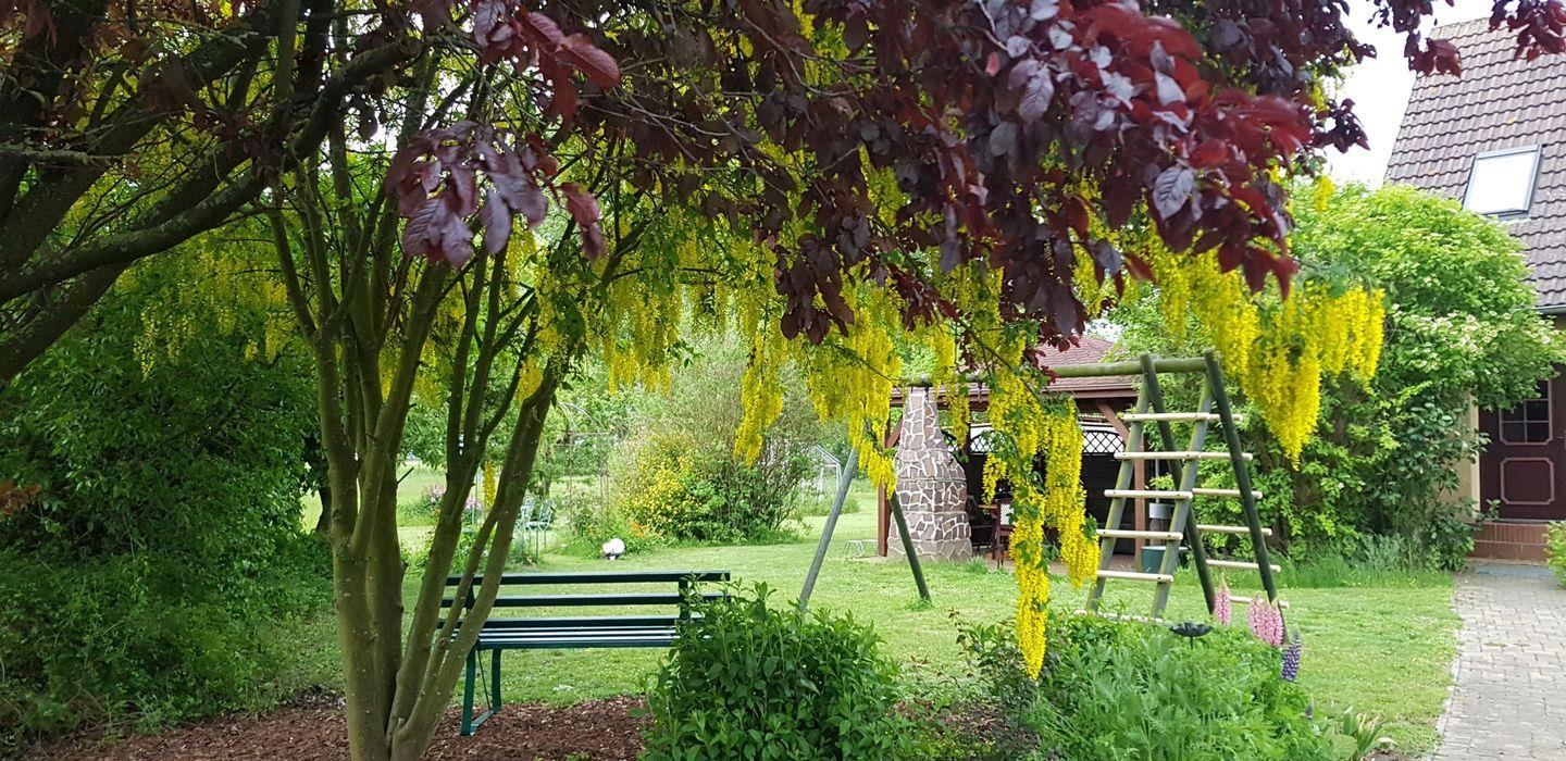 Die Wohnung ist auch kombinierbar mit den Wohnungen Sonnenschein und Wolkenlos, ideal für größere Familien. Der liebevoll gestaltete Garten des Hauses ist in viele kleine Rückzugsoasen unterteilt, die mit Pavillon, mehreren Grillplätzen, Sitzgruppen, Strandkorb, Feuerschale, Hängematte und -sessel zum gemütlichen Verweilen einladen. Auch für alle aktiven kleinen und großen Gäste stehen auf dem großzügigen Grundstück Ballspiele, Klettergerüst, Schaukel und Tischtennis bereit.