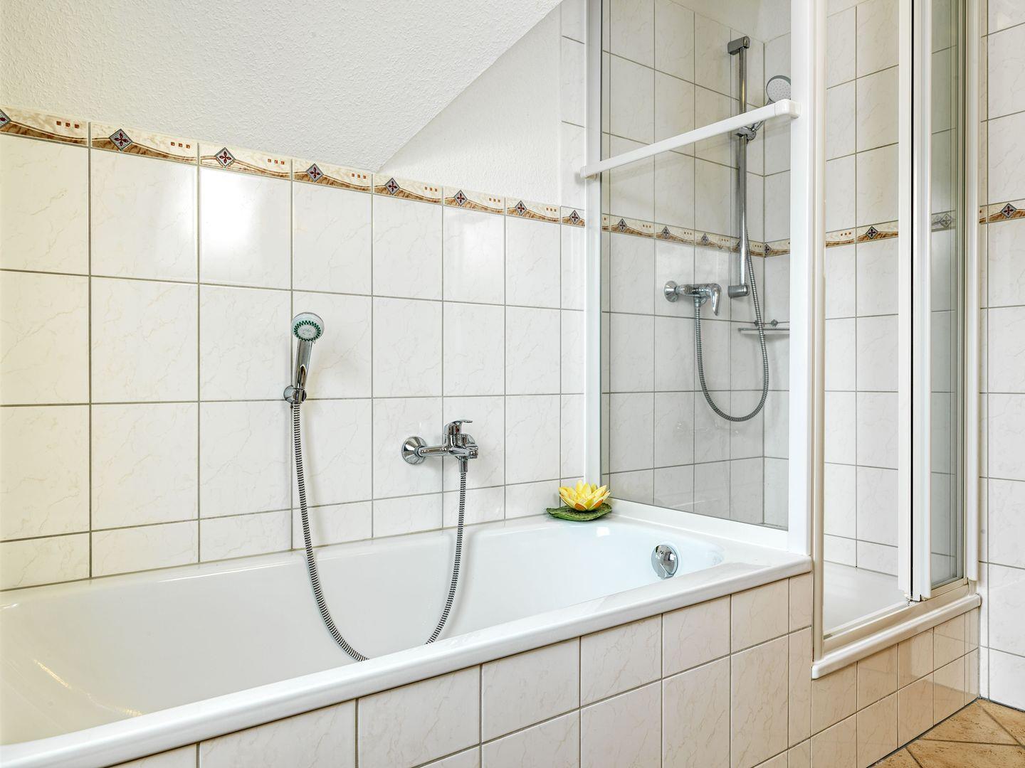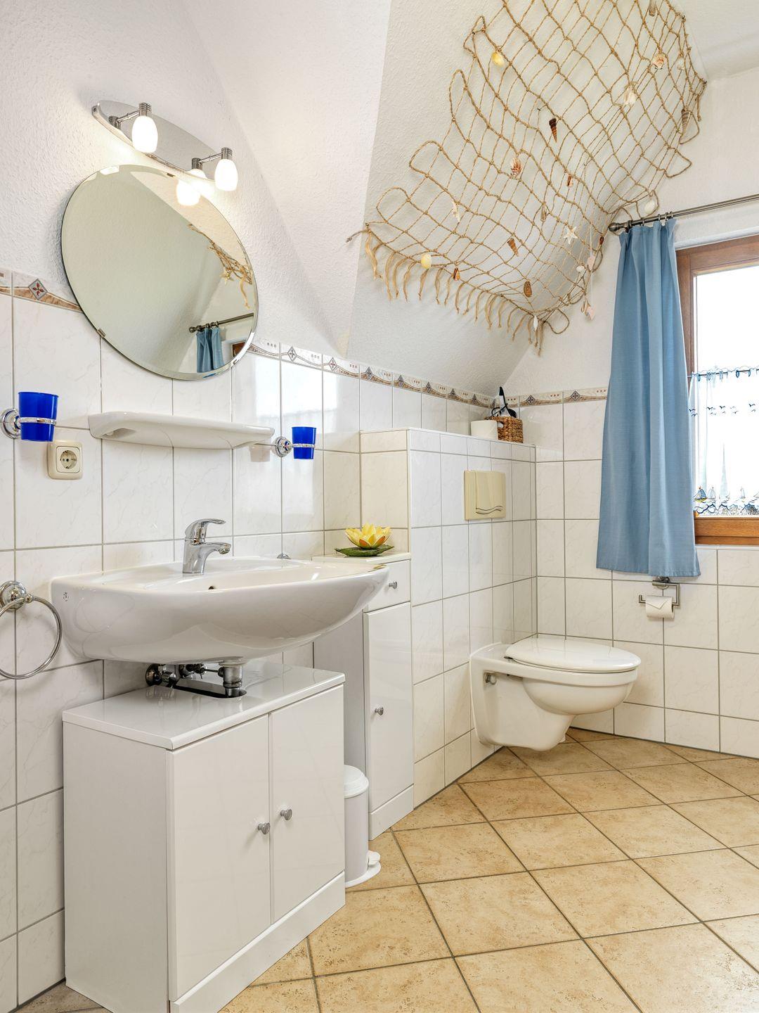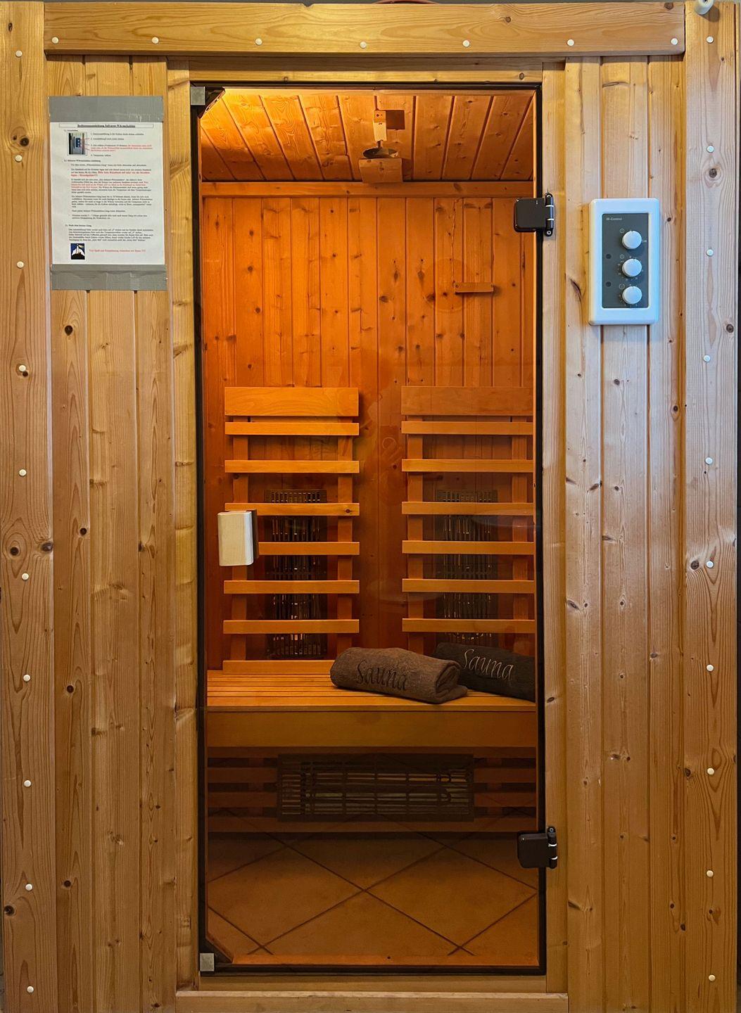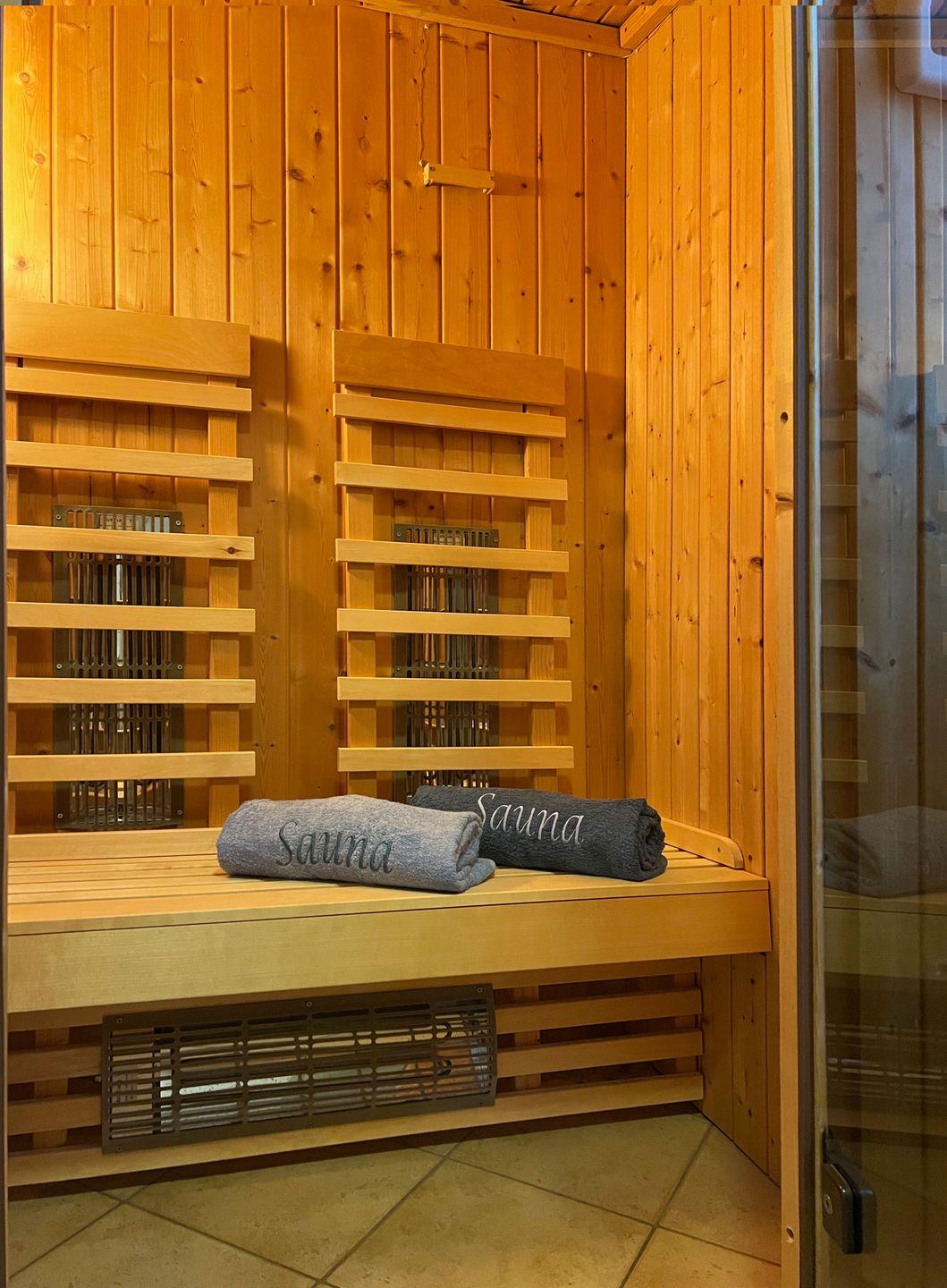 Im Erdgeschoss steht Ihnen ein Tageslichtbad mit ebenerdiger Dusche, Waschtisch und WC zur Verfügung. Außerdem lädt Sie hier eine Infrarot-Sauna zum Entspannen und Aufwärmen ein.