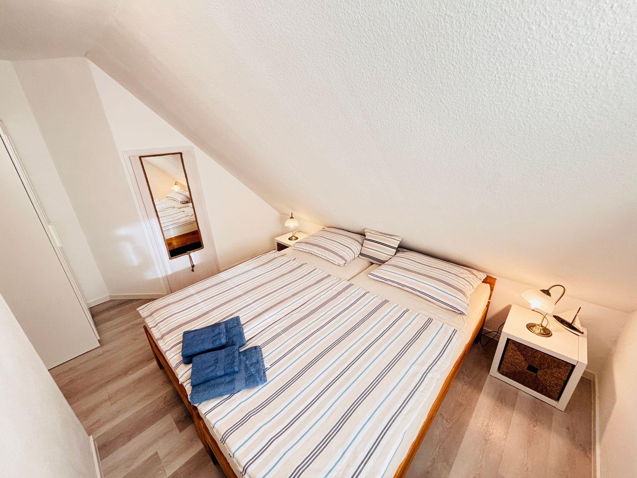 Ein Schlafzimmer ist mit Doppelbett augestattet. Das zweite Schlafzimmer verfügt über 2 Einzelbetten.