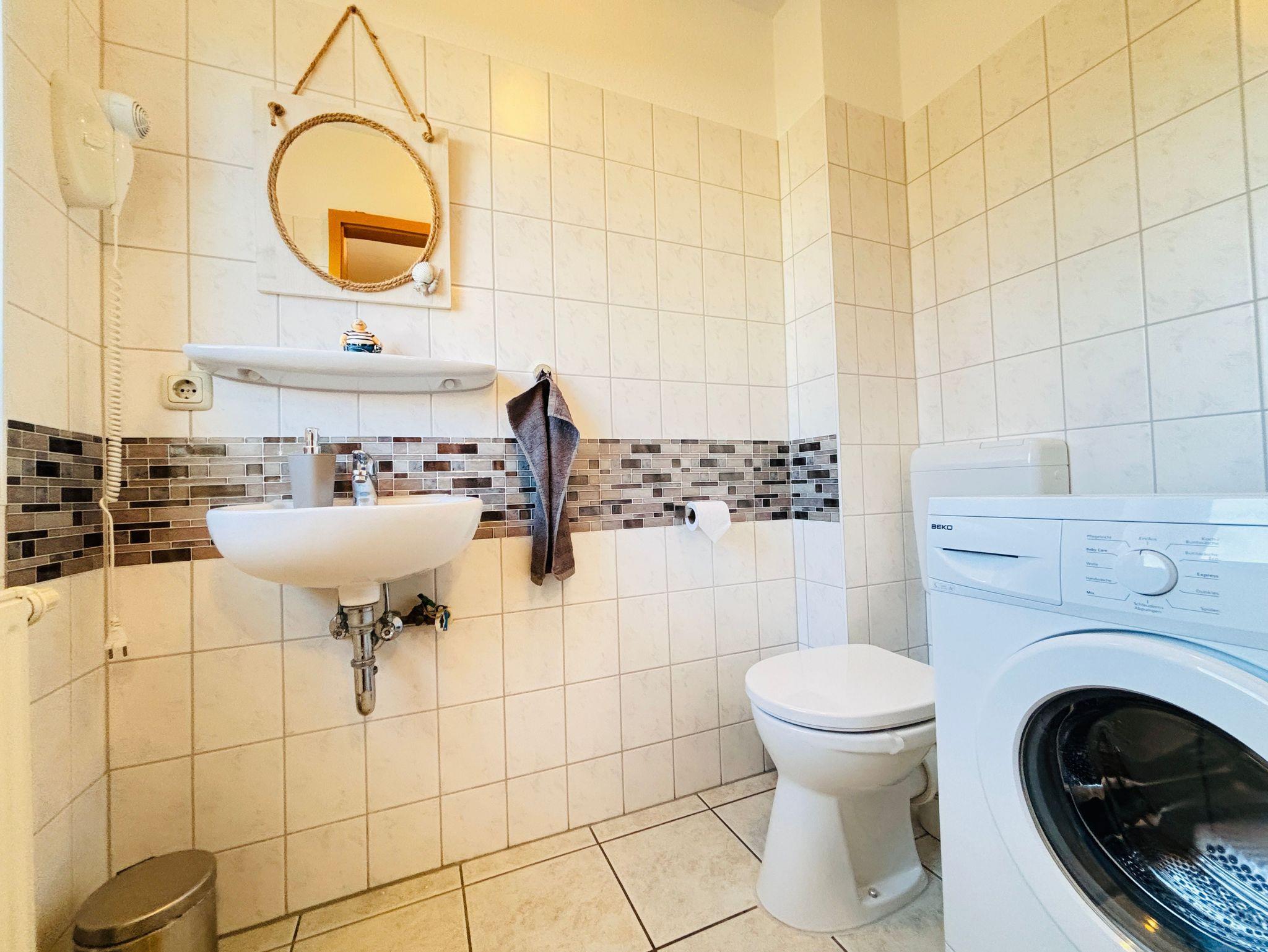 Im Ergeschoss befindet sich ein separates Gäste-WC mit Waschmaschine.