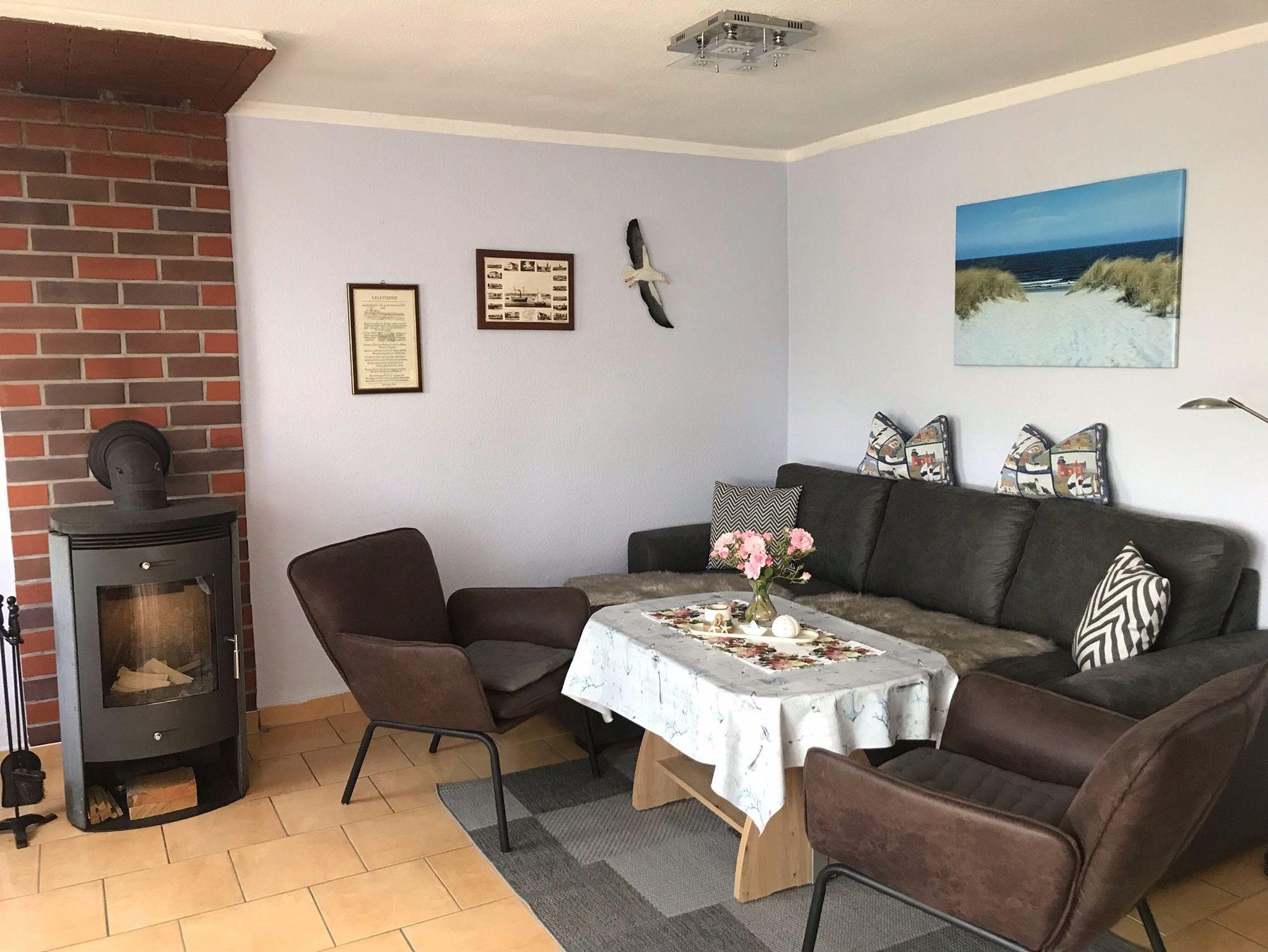 Zum Haus gehört weiterhin eine Sitzterrasse mit Grillmöglichkeit. Von dort aus hat man einen schönen Blick auf die umliegenden Wiesen und das Wasser. Aufgrund der Lage ist der Ort ideal für Besucher mit Kindern oder mit Hunden.