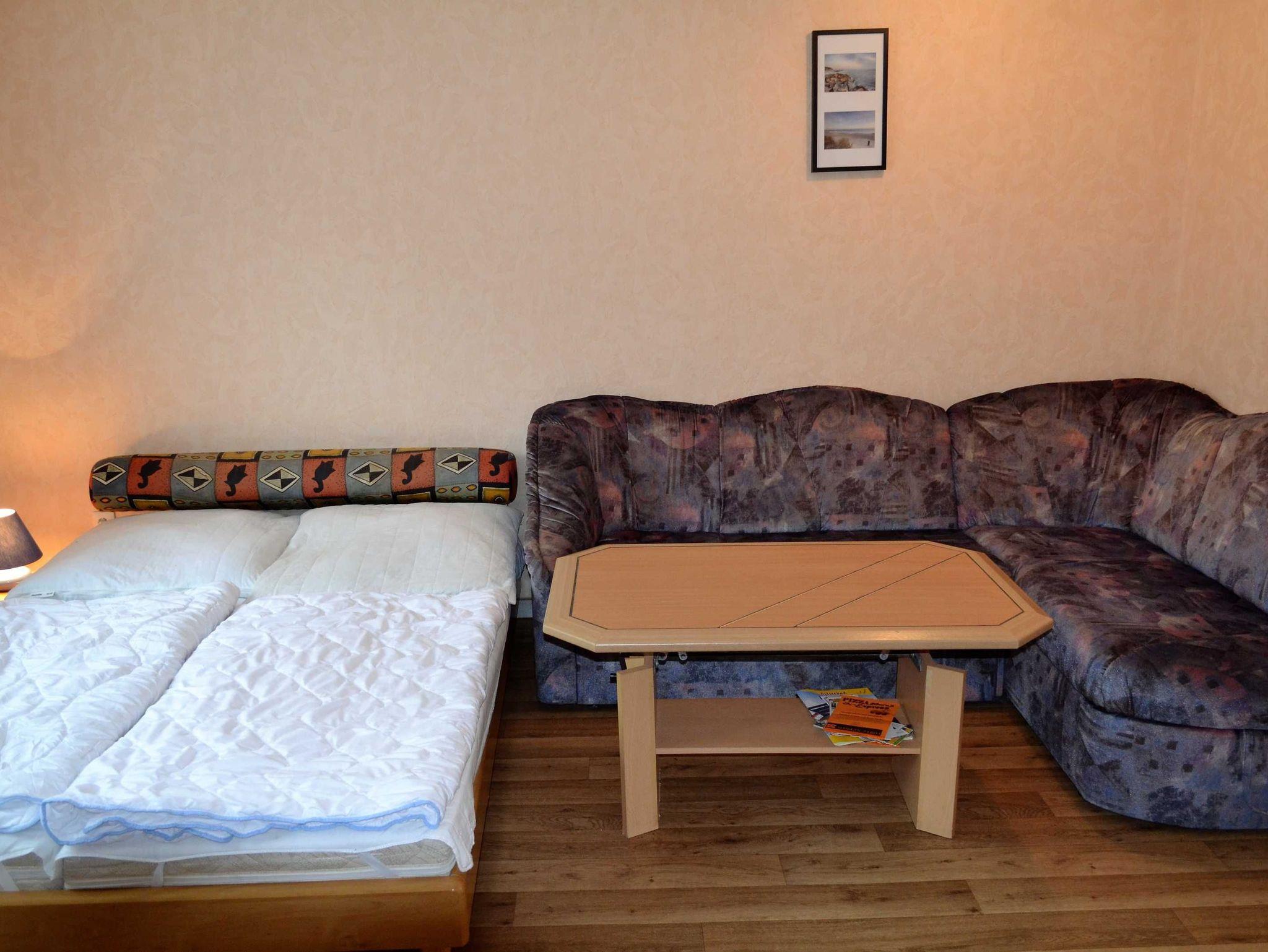 Die 40 m² große Ferienwohnung befindet sich im Erdgeschoss eines Hauses mit 7 Fewo: