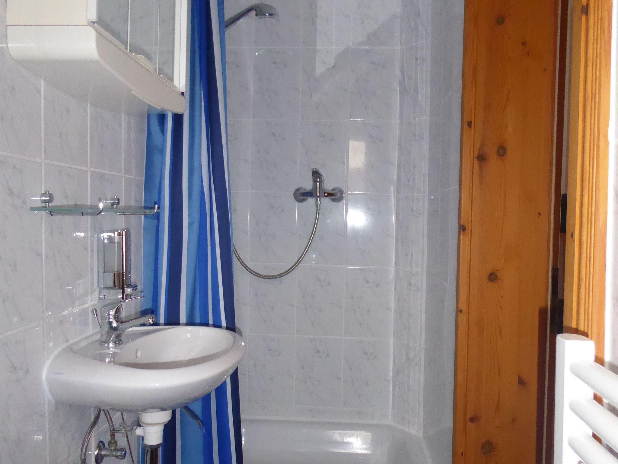 Der Nassbereich (Dusche, Waschbecken sowie WC) ist direkt vom Schlafzimmer zu erreichen. Der Schlafraum ist mit einem Doppelbett (Kopfhöhe verstellbar), Nachtschränkchen, Regal und Schrank ausgestattet.