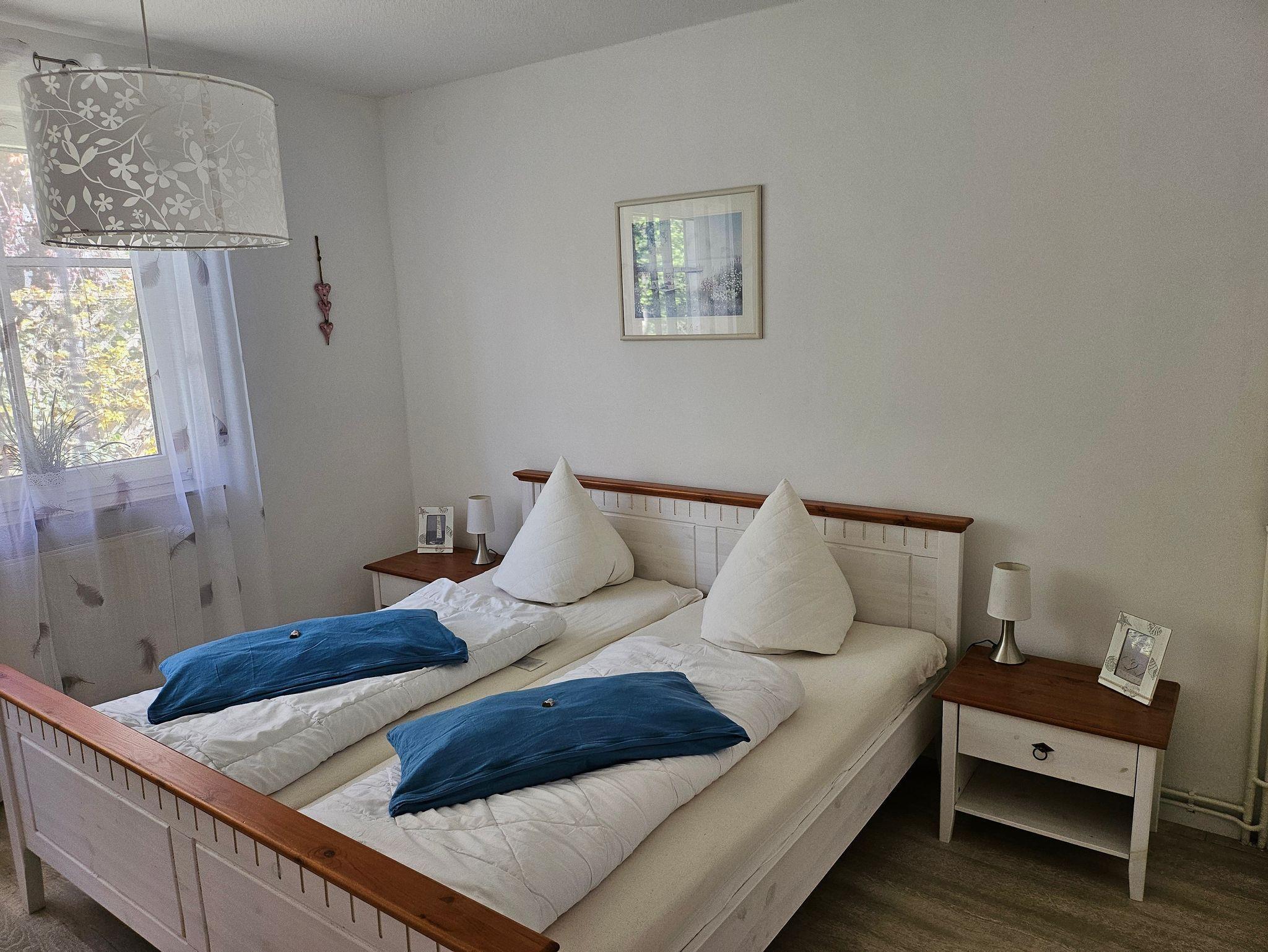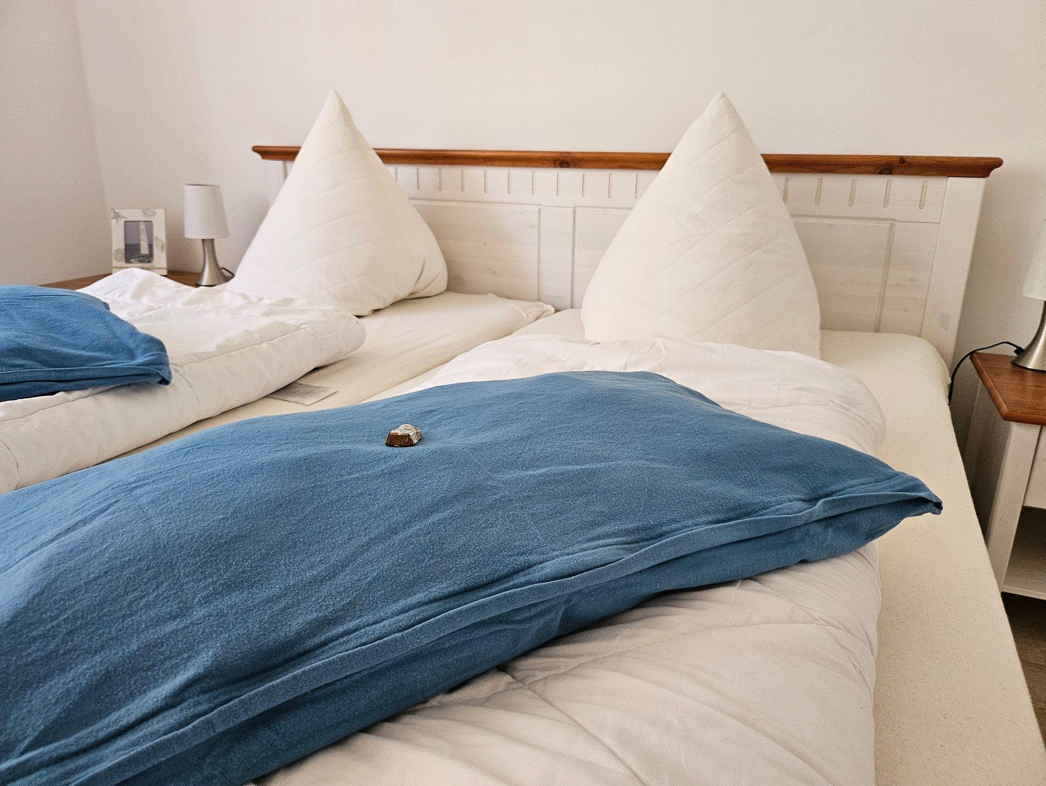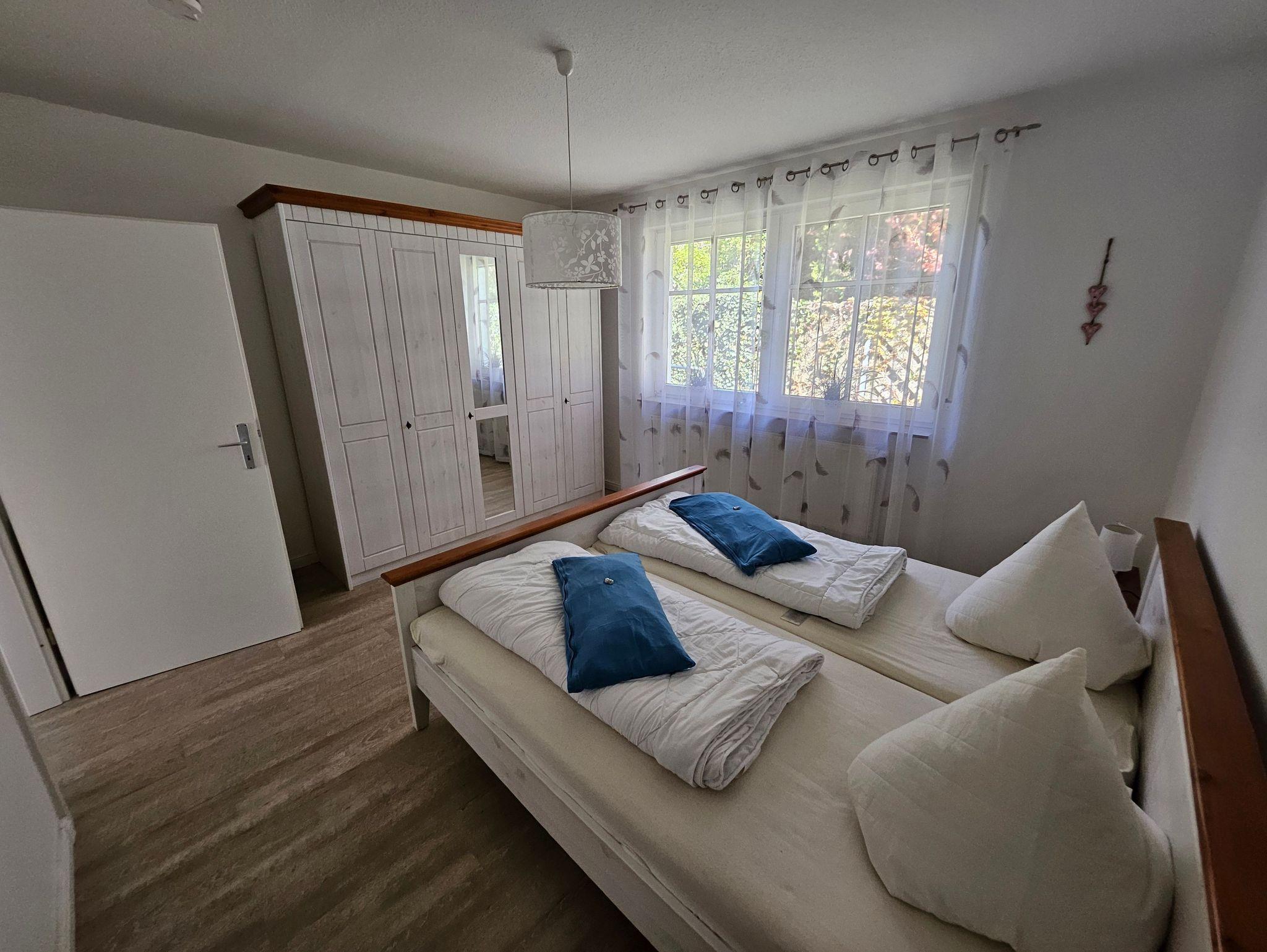 Im Schlafzimmer erwartet Sie ein komfortables Doppelbett (1,80 m x 2,00 m) sowie ein großer Kleiderschrank mit viel Stauraum. Bettwäsche und Handtücher bringen Sie bitte selbst mit.