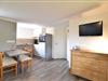 Stueetage: (åbent køkken(spisebord, elkedel, brødrister, komfur, kaffemaskine, ovn, køleskab), Stue/soveværelse(dobbeltseng, Fjernsyn(fladskærm), sofahjørne), soveværelse(dobbeltseng eller 2 enkeltsenge Senge), badeværelse(bruser, håndvask, toilet)) grill, tremmeseng, terrasse, have, havemøbler, parkering, sandkasse, legeredskaber, barnestol