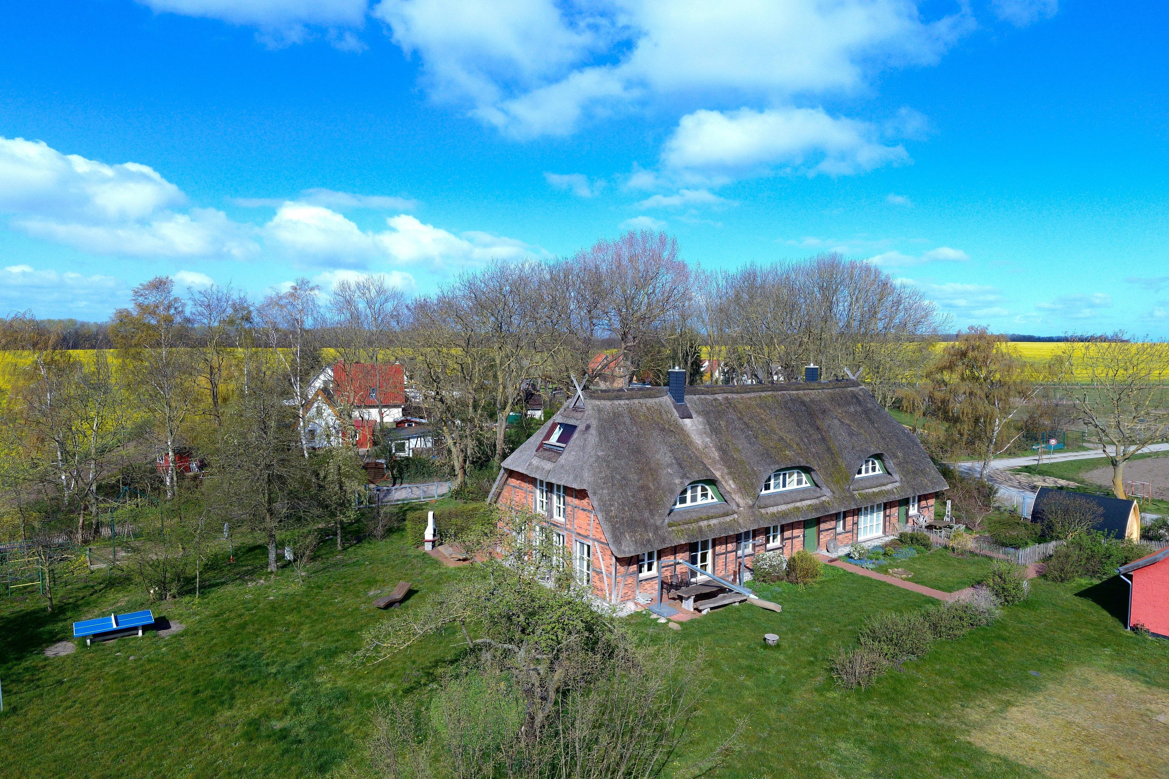 Willkommen im Reethaus mit Meerblick, das sich auf einem 4500 Quadratmeter großen Grundstück in Alleinlage direkt an der Ostsee befindet, am Strandzugang der Insel Poel. Hier können Sie die Schönheit der Ostseeküste in vollen Zügen genießen.