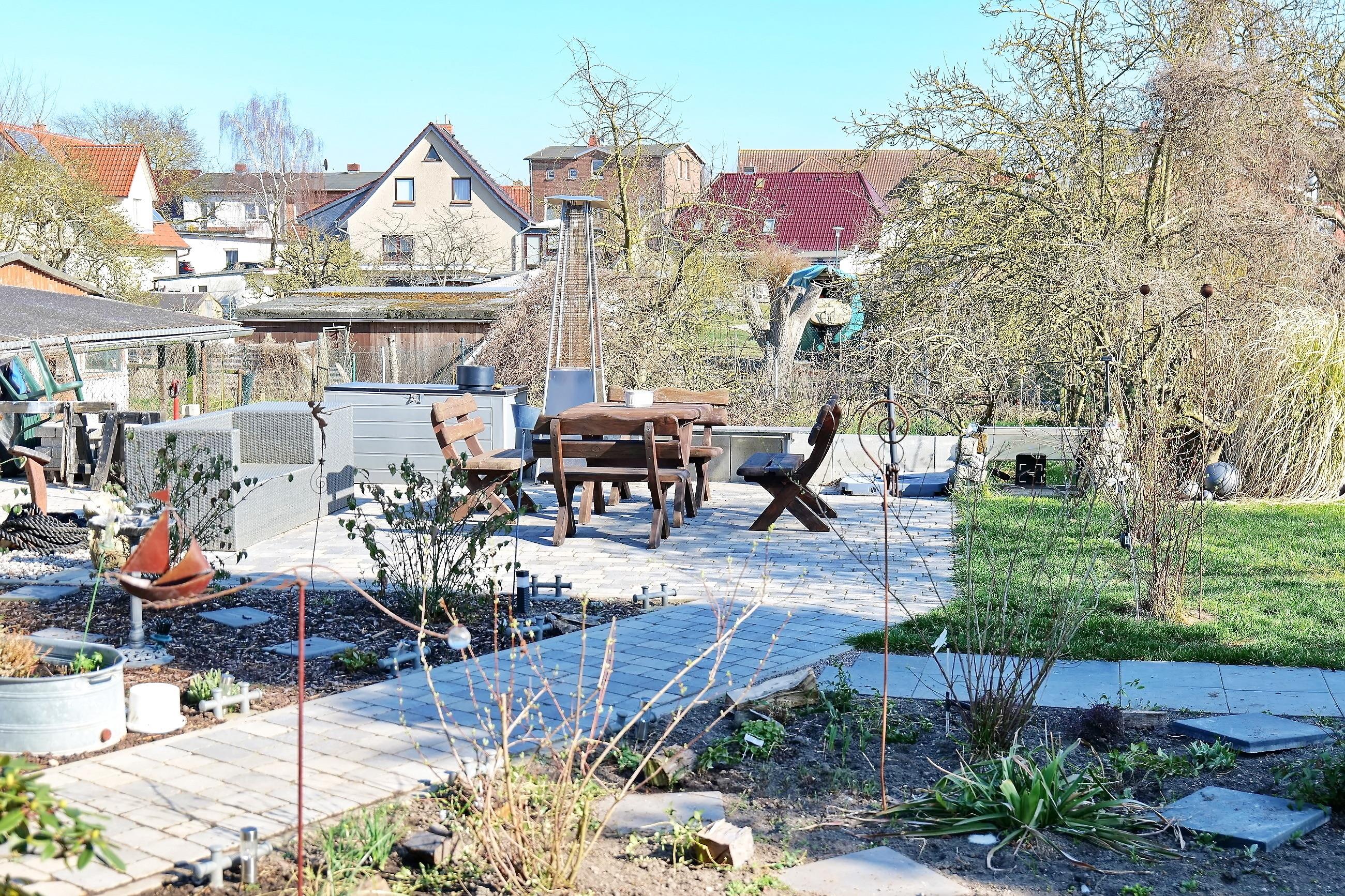 - gemeinschaftliche Terrasse im Innenhof mit Sitzmöbel (Stühle + Tisch) und Grill