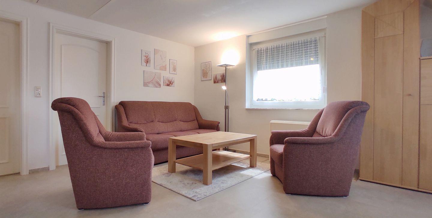 Im kombinierten Wohn- und Essbereich können Sie gemeinsame Mahlzeiten genießen oder einfach nur entspannen. Ein Esstisch lädt zu geselligen Abenden ein, während die gemütliche Sofaecke mit zwei Sesseln und einem Sofa perfekt zum Entspannen nach einem ereignisreichen Tag ist. Ein Fernseher und ein Radio sorgen für Unterhaltung, falls Sie mal nicht die zahlreichen Freizeitmöglichkeiten der Insel nutzen möchten.
