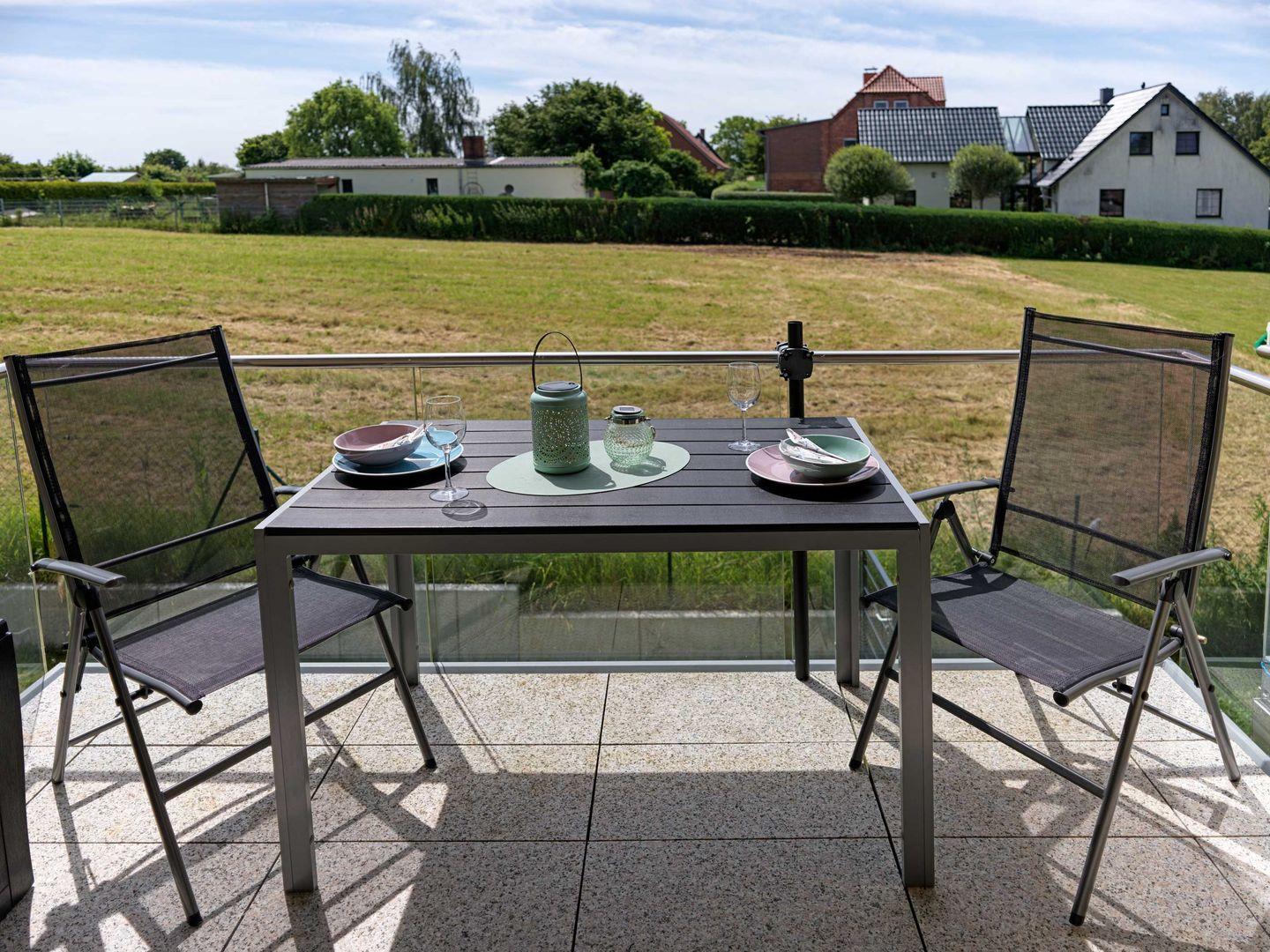 Die Fenster und Balkontür ist mit Insektenschutzgittern ausgestattet.