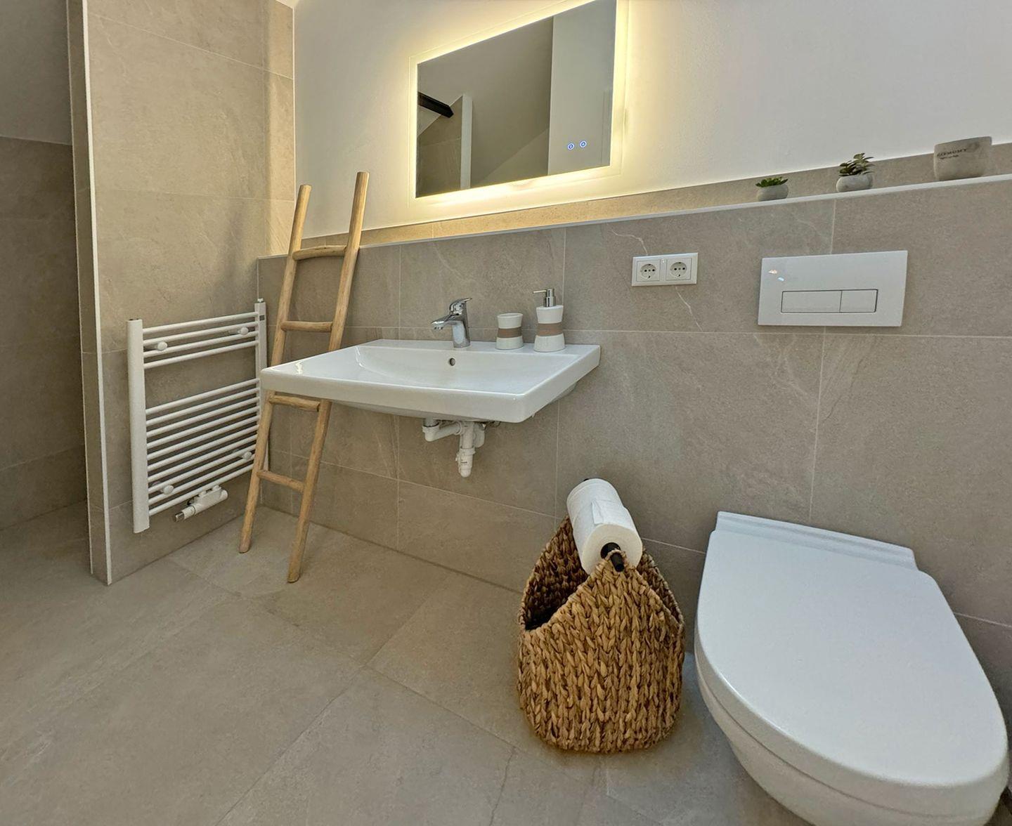 Im EG befindet sich ein Gäste Bad mit Dusche, im OG ein großzügiges Bad mit toller, ebenerdiger Dusche.