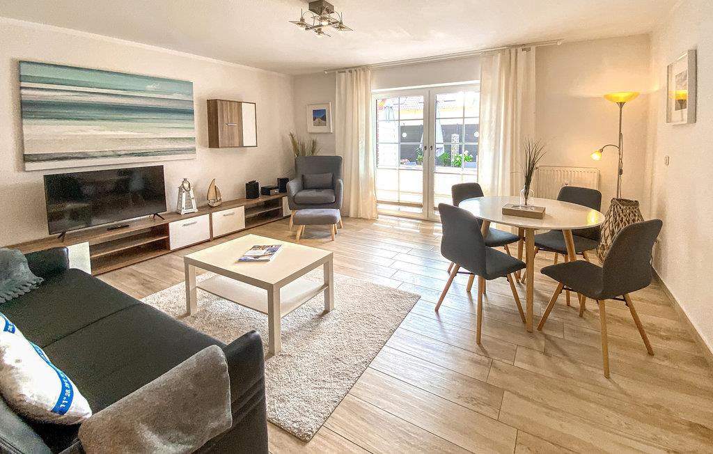 Toværelseslejligheden ligger i stueetagen til et velholdt frisisk hus. Indretningen består af varme farver, trægulv og moderne, maritime stilvalg, så her får I en skøn ramme om ferien. Soveværelset er indrettet med en stor dobbeltseng. Den anden seng er i opholdsstuen, og den brede sovesofa har plads yderligere to gæster. Badeværelset har en regnbruser, og I kan desuden se frem til et moderne, fuldt udstyret køkken, som er integreret i det hyggelige opholdsrum.