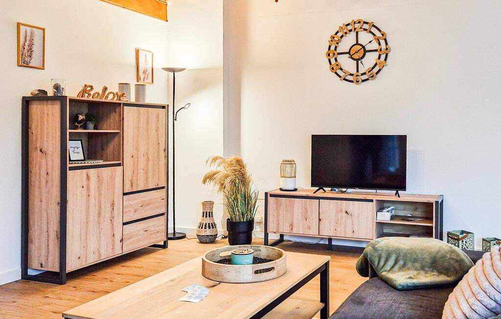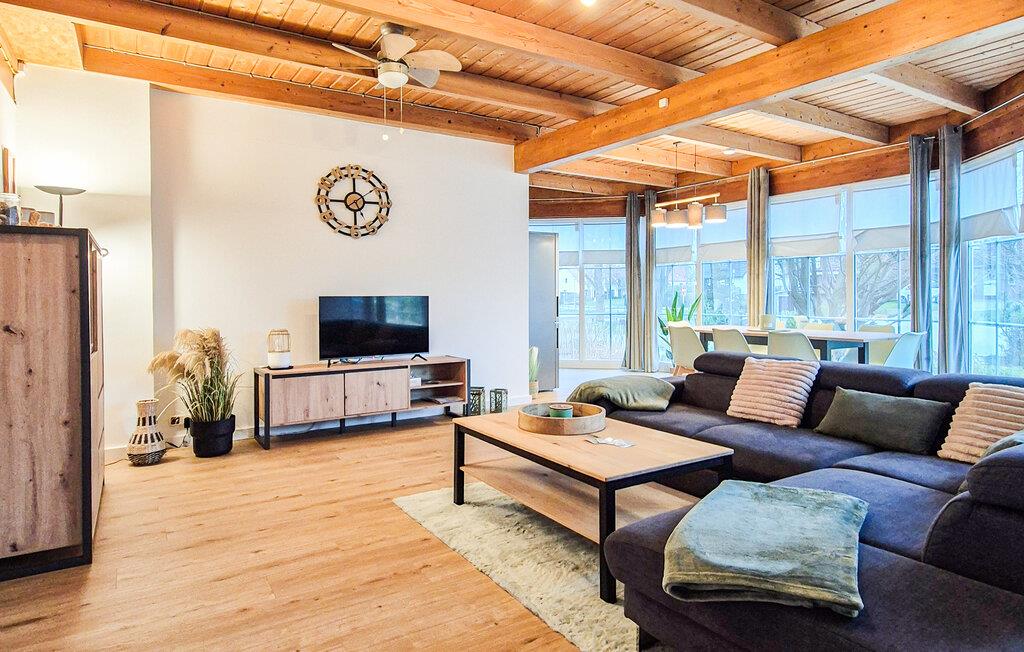 Den meget rummelige opholdsstue har fladskærms-tv og en behagelig sovesofa til to. Den åbner op til det fuldt udstyrede køkken med keramisk kogeplade. Fra køkkenet har du adgang til det ene badeværelse, som også kan nås fra soveværelse 2. Det andet badeværelse med bruser, boblebad og separat toilet kan nås ud fra soveværelse 3 eller via en anden udvendig indgang.