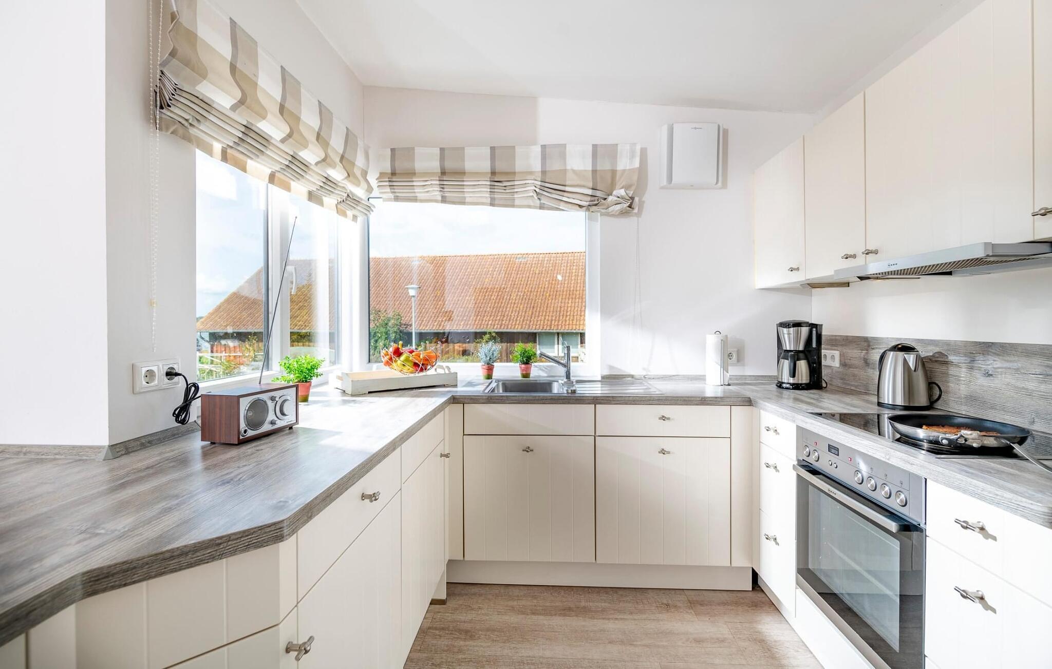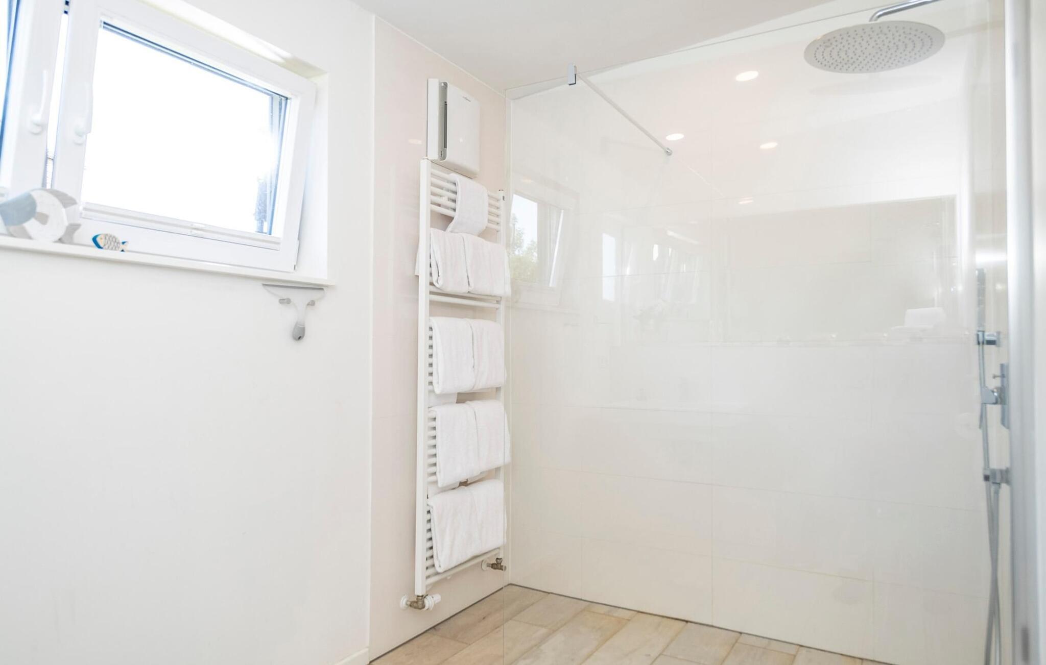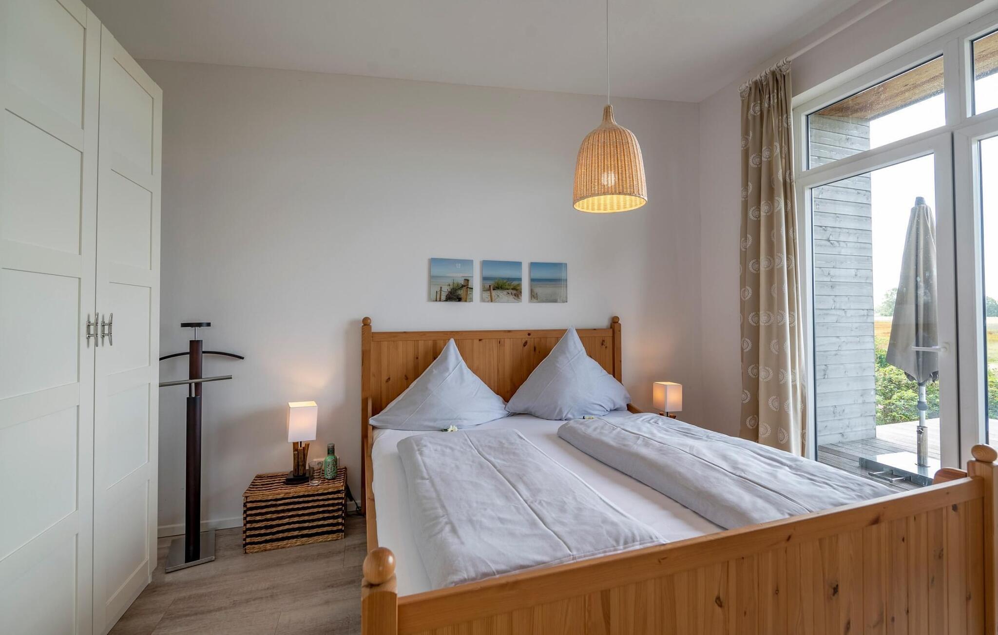 Fra den 55 kvm store Bankirai træterrasse med heldagssol kan I få adgang til haven via en 4m bred udvendig trappe. Den 400 kvm store ejendom, indhegnet og alene anvendelig, byder på en fantastisk udsigt over uberørt natur og Østersøen. Højt til loftet og kæmpe vinduesfronter præger feriehusets indretning. Mens det åbne køkken byder på alle bekvemmeligheder af højkvalitetsmøbler, inviterer et massivt spisebord og den rummelige stue med ovn jer til at blive hængende. Det store soveværelse byder også på en malerisk udsigt over vand og natur. Glasregnskovsbruseren i det stilfulde badeværelse tilbyder en ægte afslapningsoplevelse. En frisk og ukompliceret strandhusstil kendetegner dette maritimt inspirerede feriehus. Naturligt træ, rattan og subtile farver i naturlige toner minder om stranden og klitterne. Med følelsen af at ville gå barfodet hen over de hvidkalkede trægulvbrædder repræsenterer denne indretning en holdning til livet. Bemærk venligst, at denne ejendom kun er tilgængelig til leje fra lørdag til lørdag i høj- og mellemsæsonen. Kortere ophold er også muligt i lavsæsonen. Kontakt os venligst for et tilbud. Vores servicepartner, feriehusbureauet, tilbyder jer 7 topudstyrede feriehuse i drømmebeliggenhed og forskellige indretningsstile på lokationen Wackerballig.