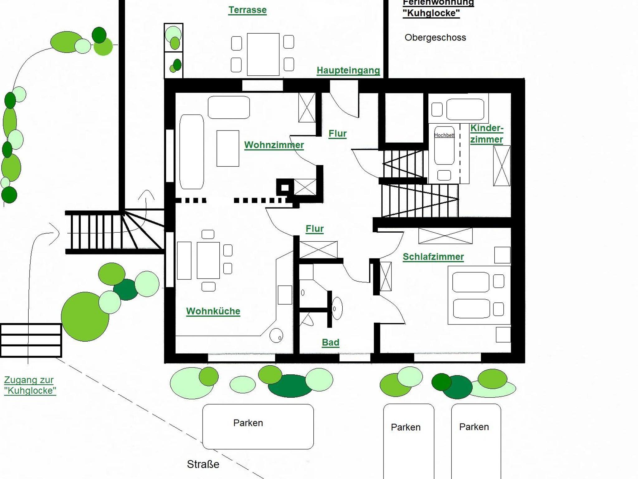 85 m² für 2-4 Personen, Obergeschoss mit separatem Eingang, gehobene Ausstattung.