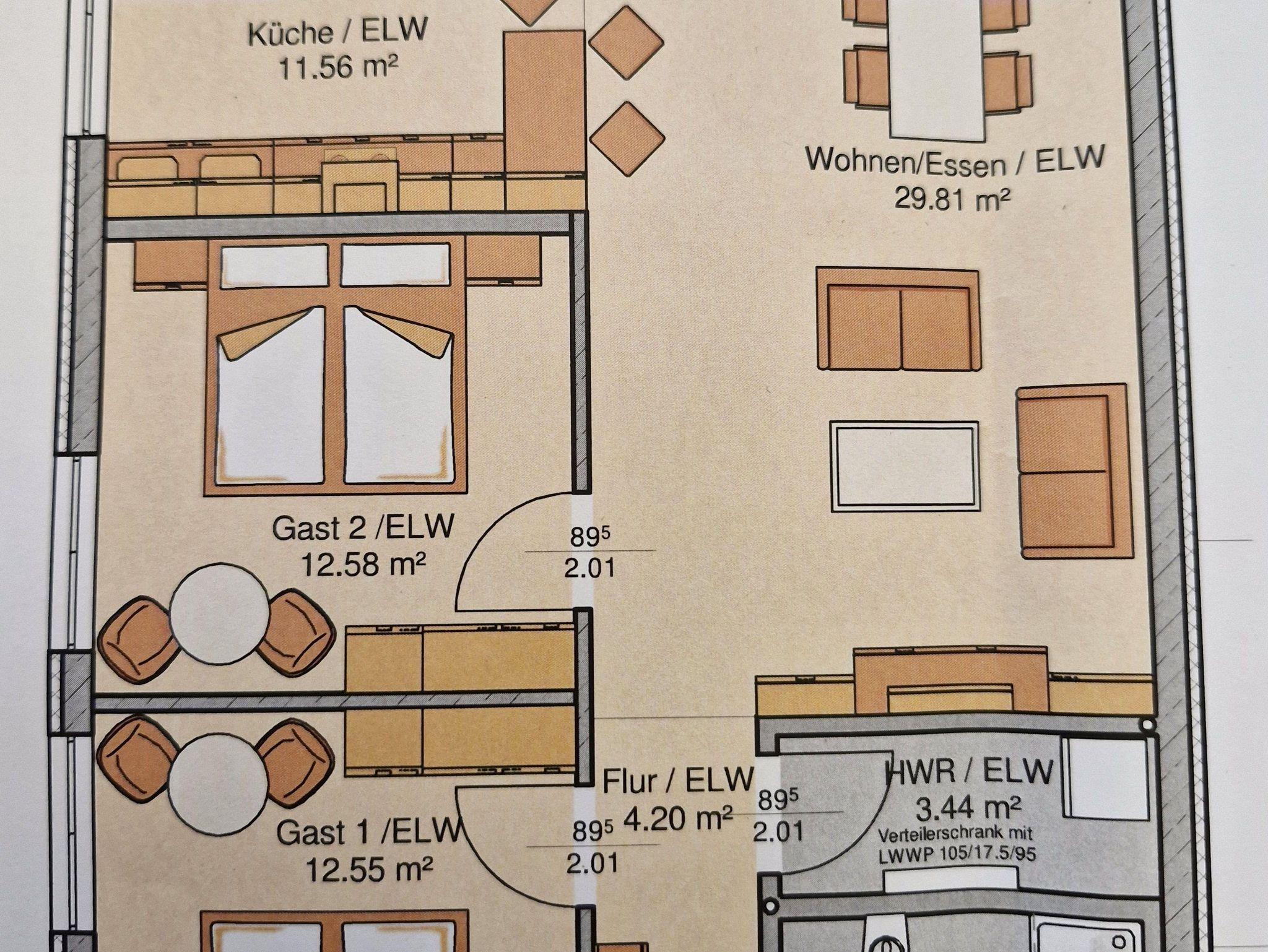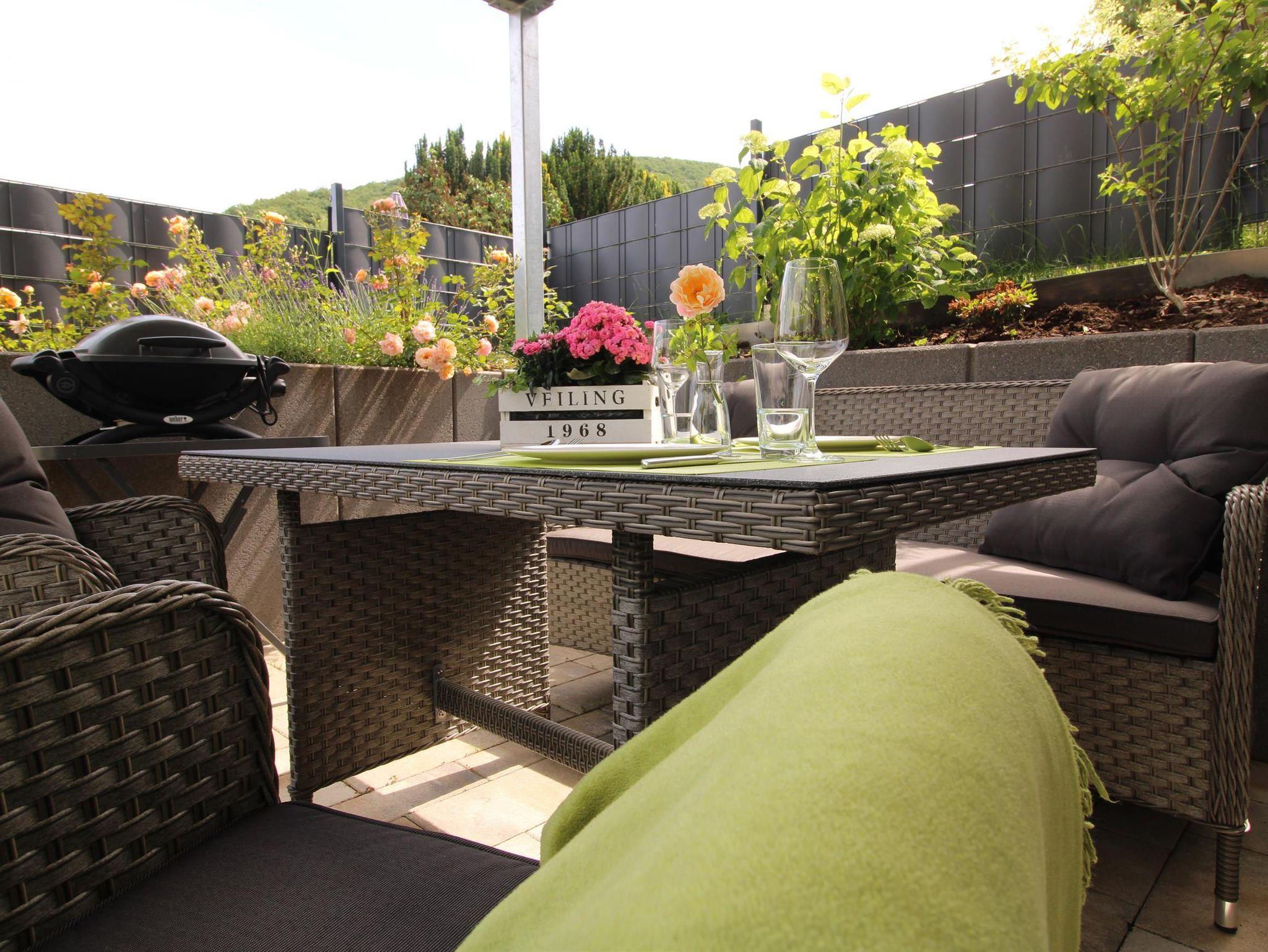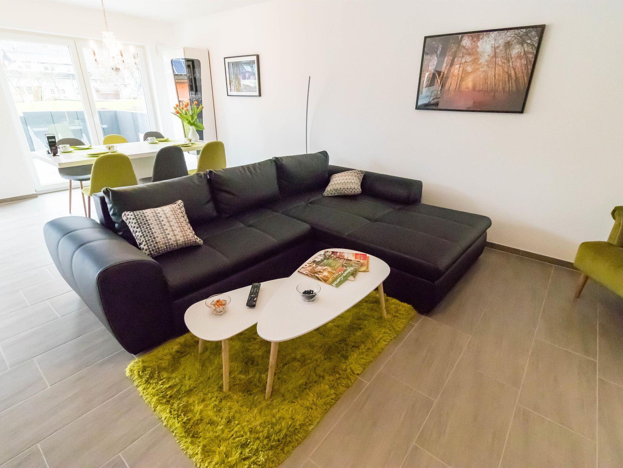 Unsere Ferienwohnung ist ein Neubau, errichtet nach den Effizienzvorgaben gemäß den KFW 70-Standards. Sie verfügt über eine Fußbodenheizung und ein dezentrales Belüftungssystem. Die insgesamt 80 Quadratmeter große Wohnung besteht aus einem großen Wohn- und Esszimmer, einer modernen Küche, zwei Schlafzimmern sowie einem Badezimmer. Alle Räume wurden mit viel Liebe zum Detail und für größtmöglichen Komfort für unsere Gäste eingerichtet. Vervollständigt wird das Angebot durch eine möblierte Gartenterrasse (inklusive Grill) und ein separater PKW-Stellplatz zur Ferienwohnung.