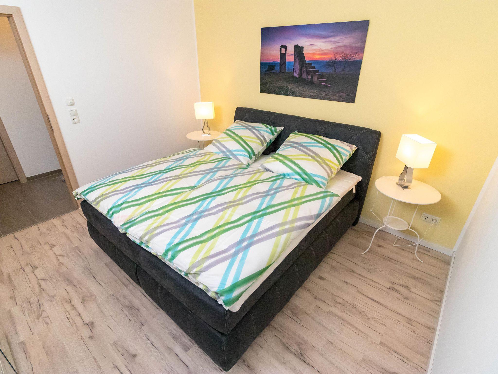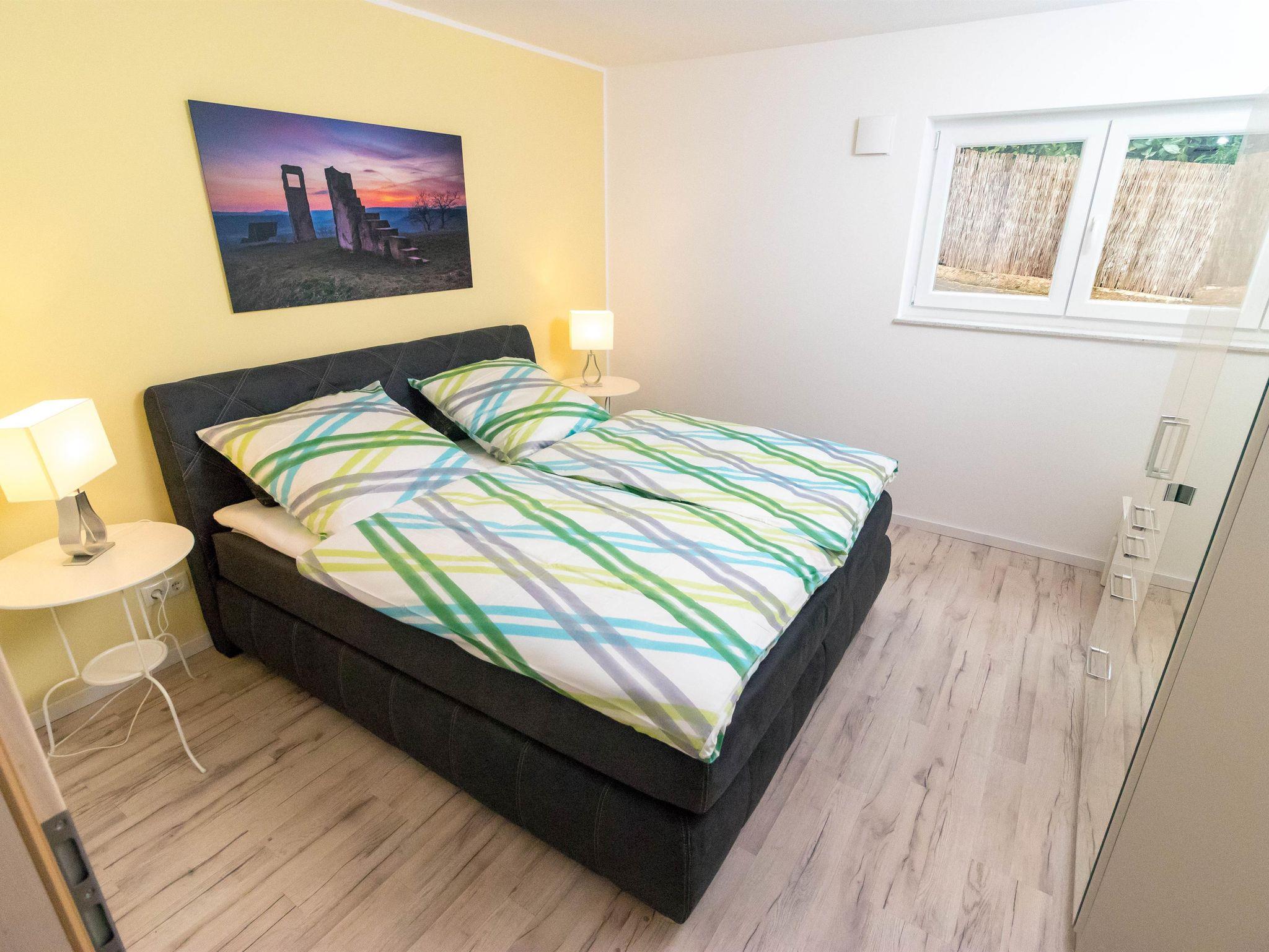 Die beiden Schlafzimmer sind mit komfortablen Boxspringbetten ausgestattet, die mitgebrachte Reisegarderobe findet in den jeweiligen Schränken Platz.