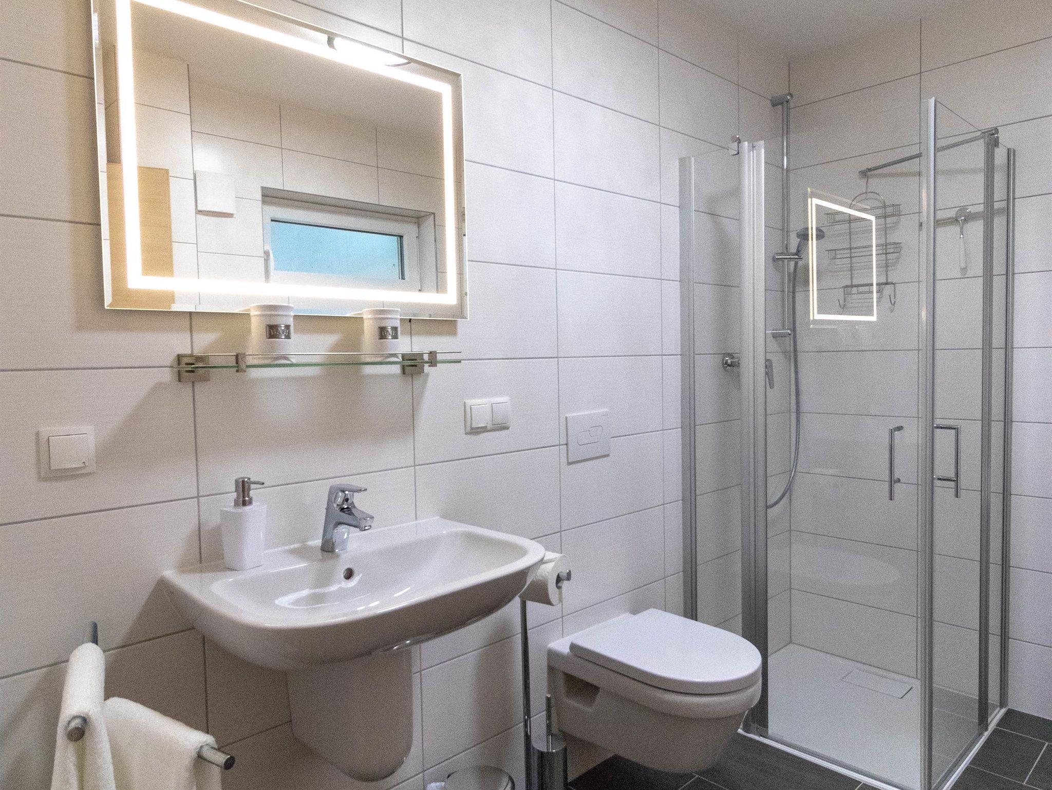 Das Badezimmer verfügt über eine Dusche, Fön und Handtücher legen wir unseren Gästen bereit.