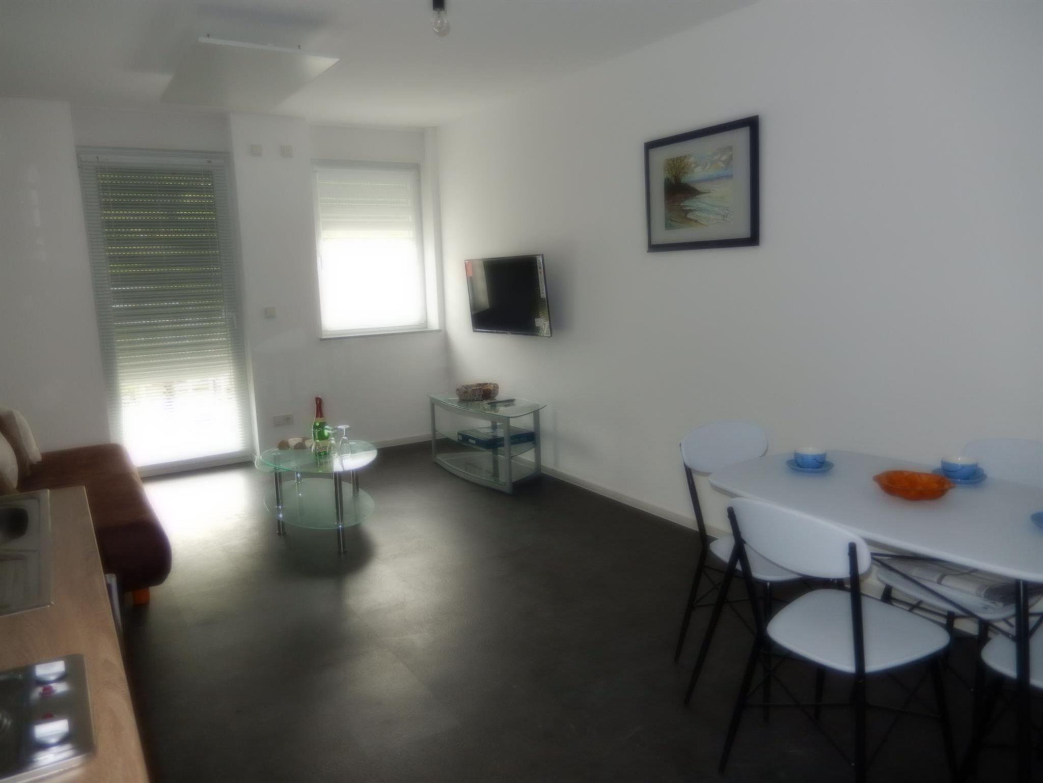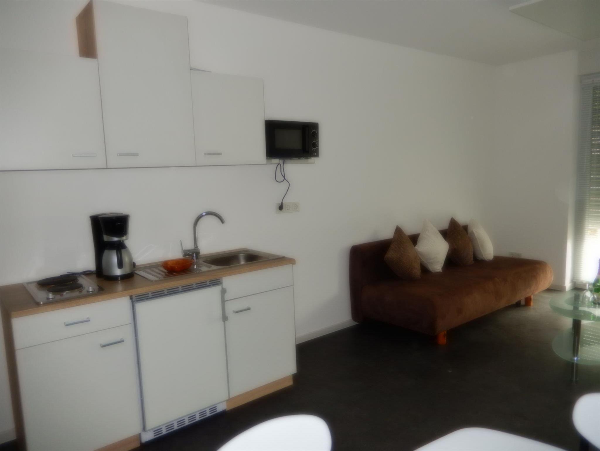 Die Ferienwohnung Nr. 4 verfügt über ein sep. schlafzimmer mit Doppelbett, Bad mit ebenerdiger Dusche und WC sowie Balkon, Kochplatte, Mikrowelle. Keine Geschirrspülmaschine, kein Backofen!
