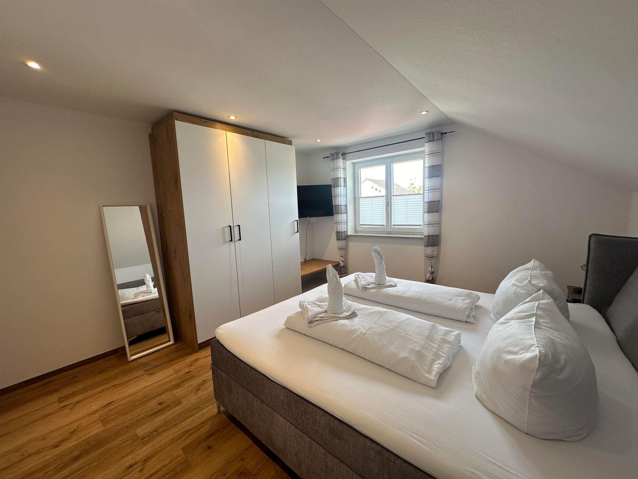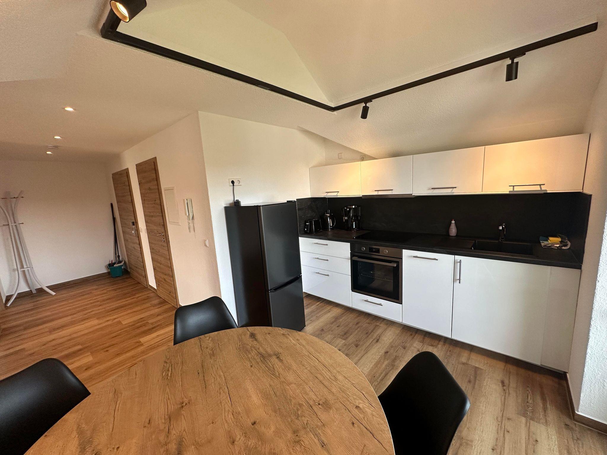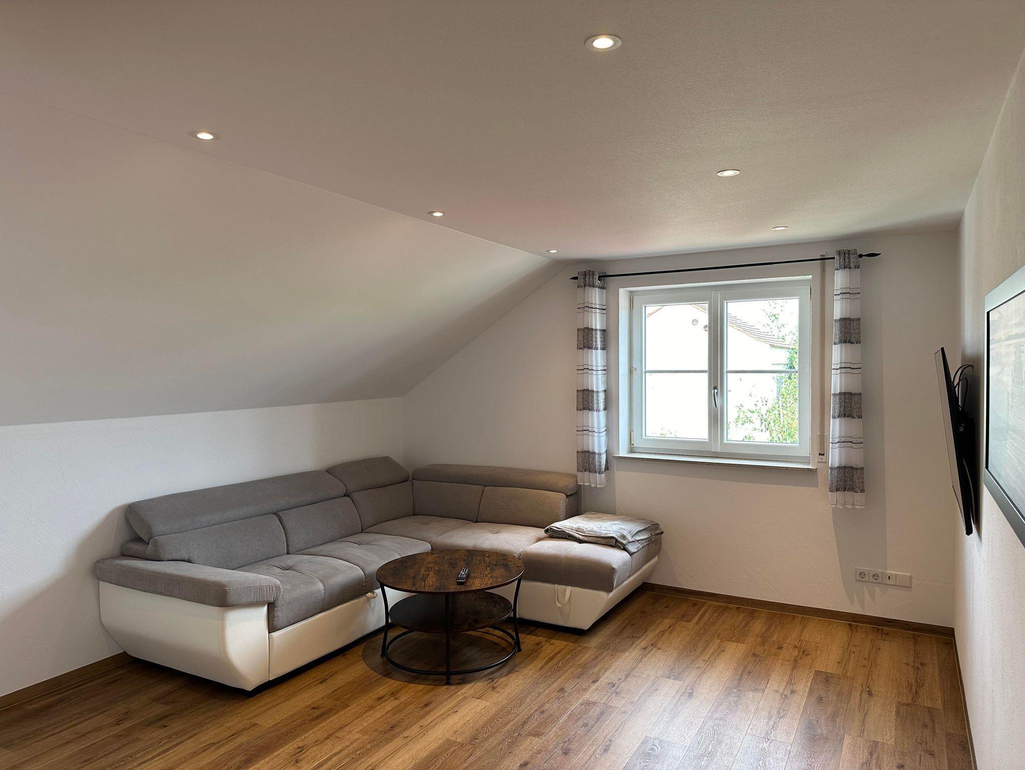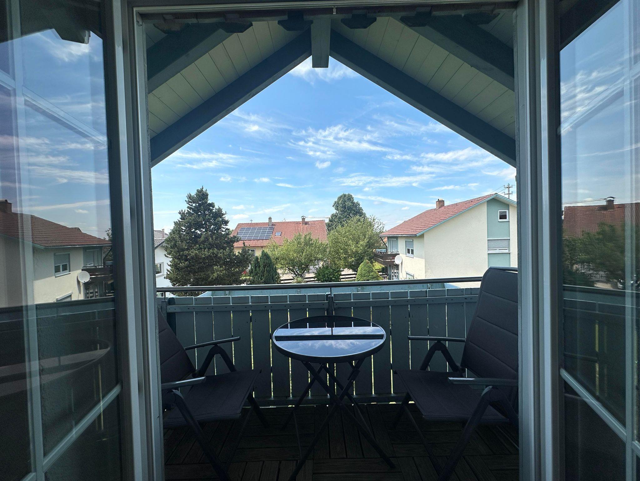 Gemütlich eingerichtete Ferienwohnung im Dachgeschoss mit Balkon. Separates Wohnzimmer mit Schlafcouch. Schlafzimmer, Küche und Essbereich. Bad mit Dusche/WC.