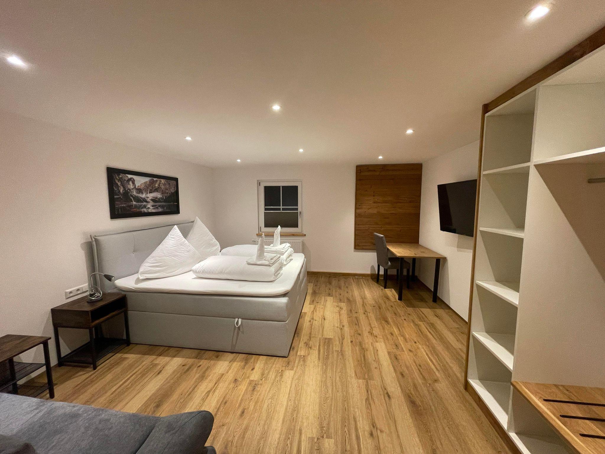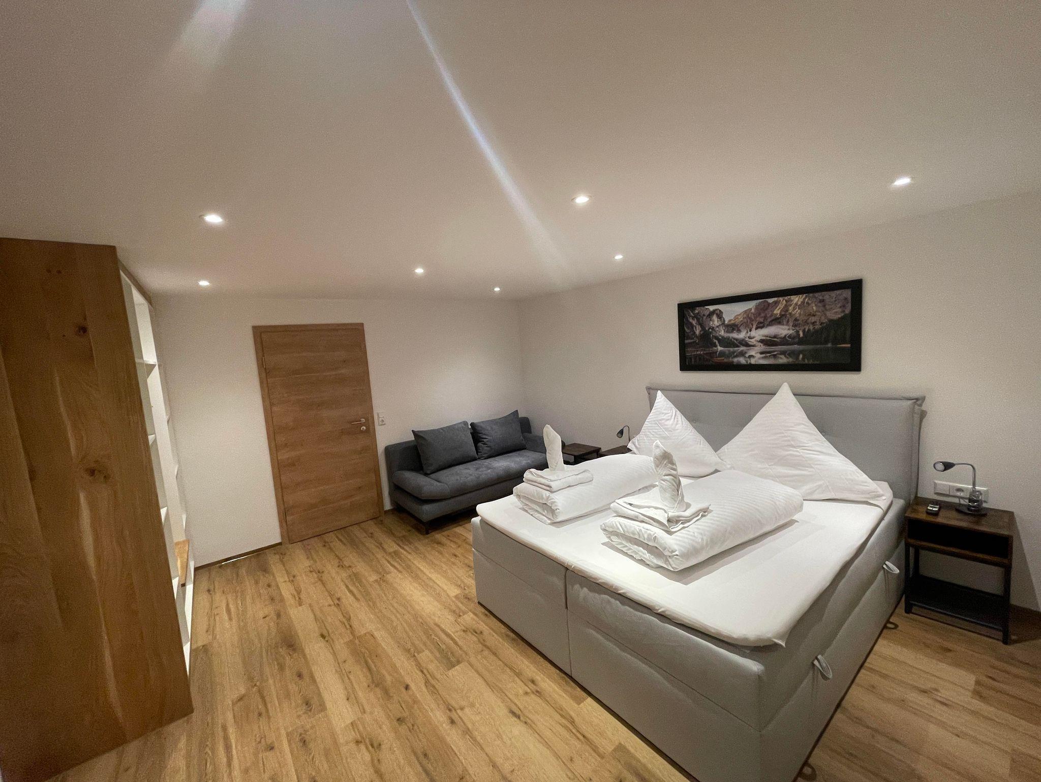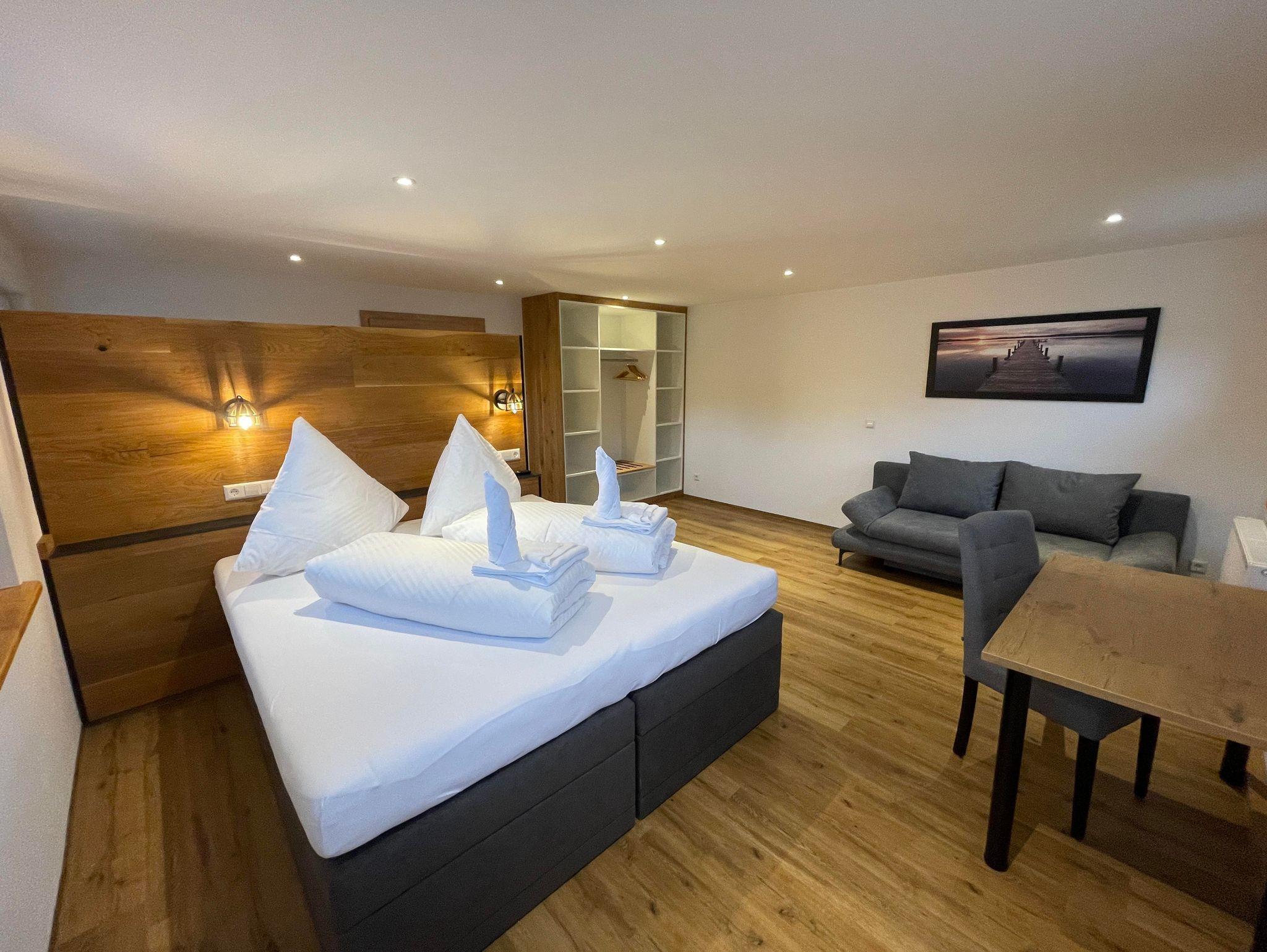 Die traumhaft helle Wohnung wurde komplett neu renoviert und ist im Haupthaus über dem Restaurant. Mit 2 getrennten Schlafzimmern ist die Wohnung für 2 bis max 6 Personen geeignet. Die Küche ist mit Essbereich getrennt von den Schlafzimmern und hat ein Badezimmer mit Dusche und WC. Außerdem bietet die Wohnung einen Balkon über dem großen, überdachten Biergarten.