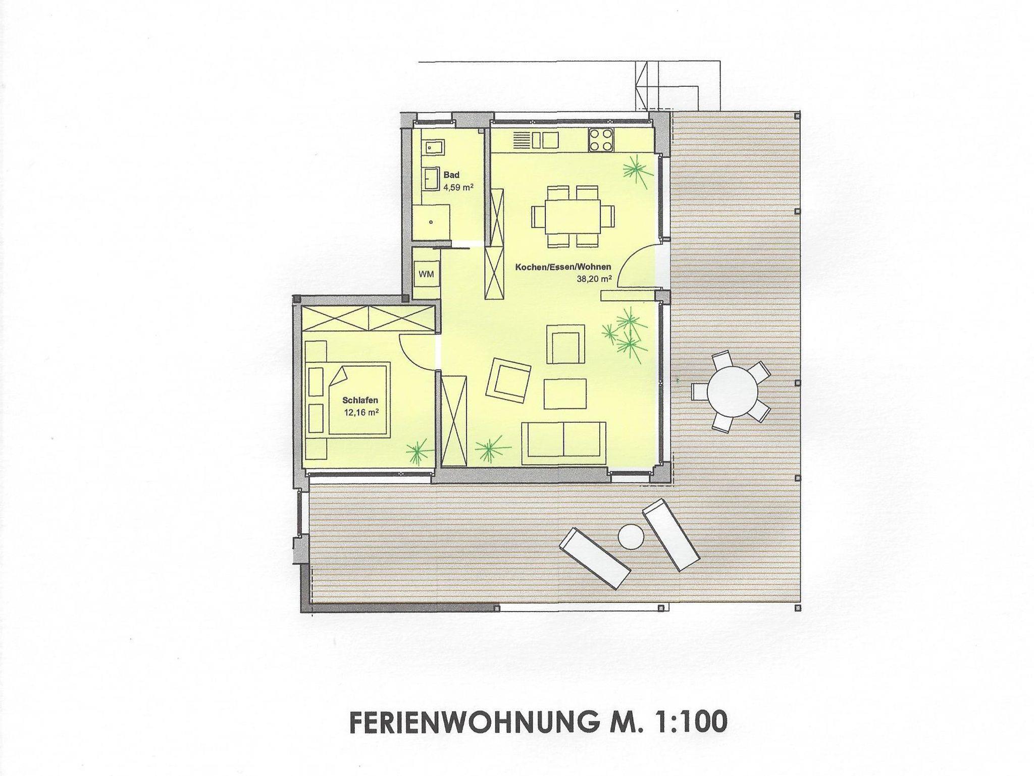 Attraktive Wohnung in einem neuen Haus mit Küche-Essen-Wohnen mit Sofabett, TV, Radio, Telefon, Internet, 1 Doppelschlafzimmer, Badezimmer mit Dusche/WC.