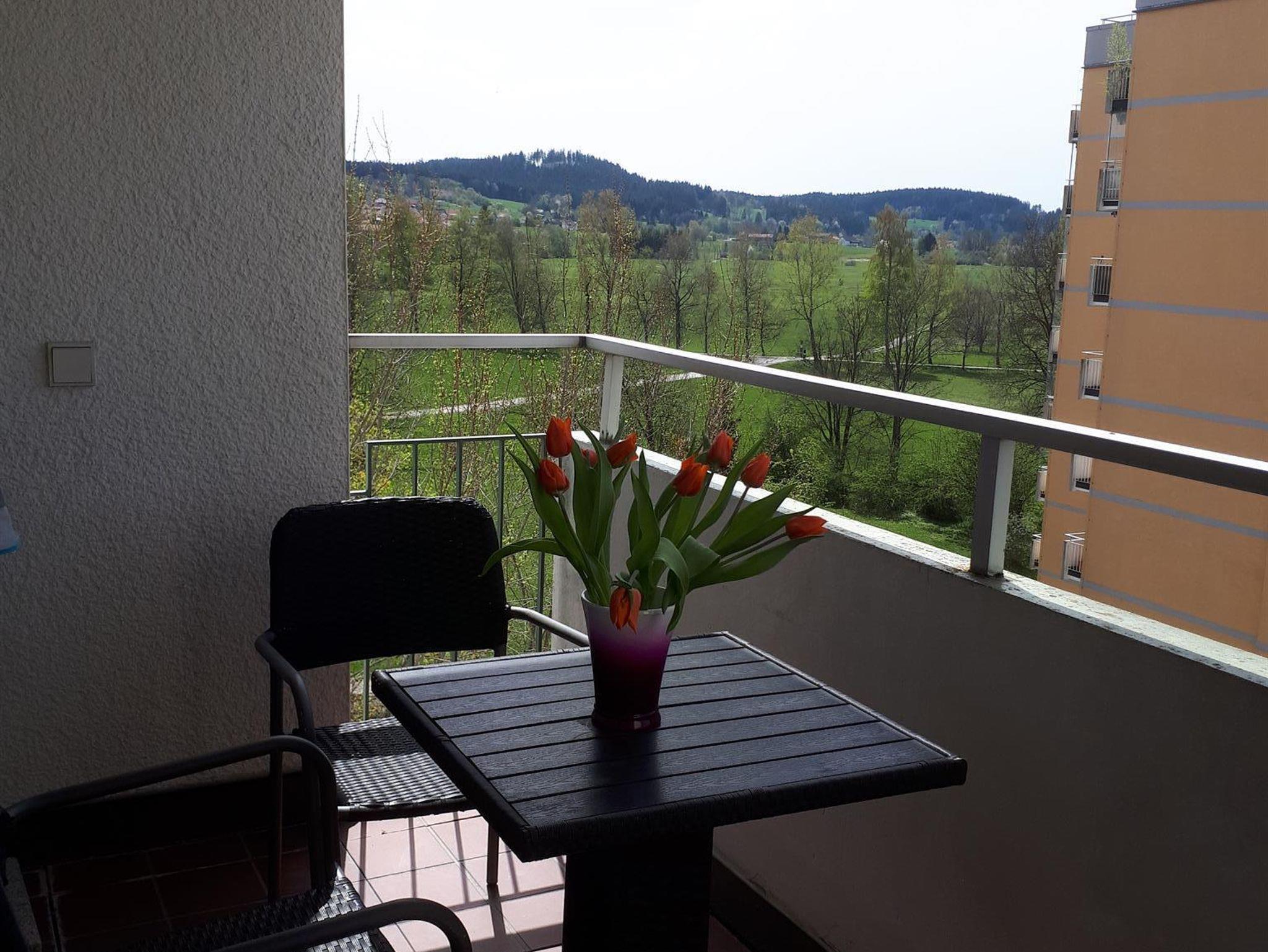 unsere gemütliche Ferienwohnung im 5. Stock eines Hochhauses mit Blick auf den Segelflugplatz und die Stadt Isny liegt direkt am Naturschutzgebiet Bodenmöser.