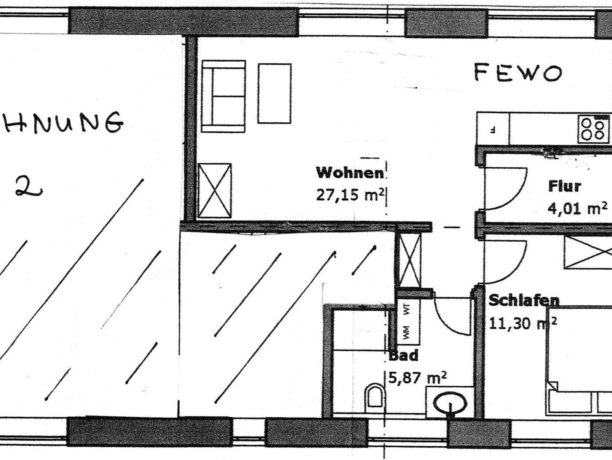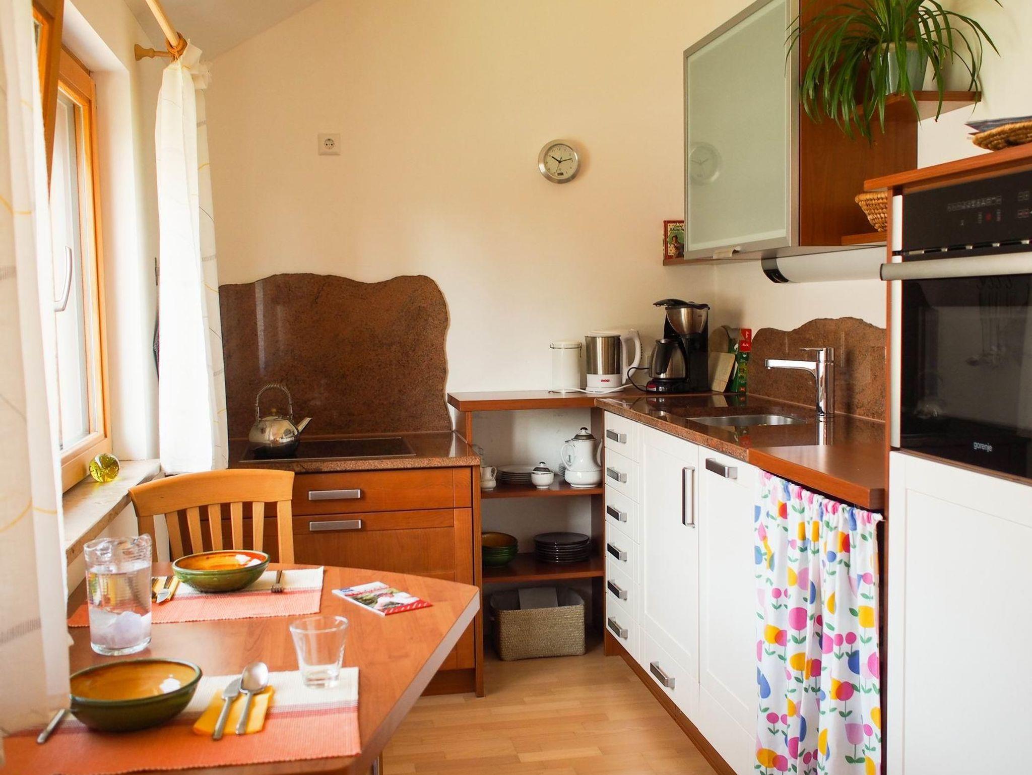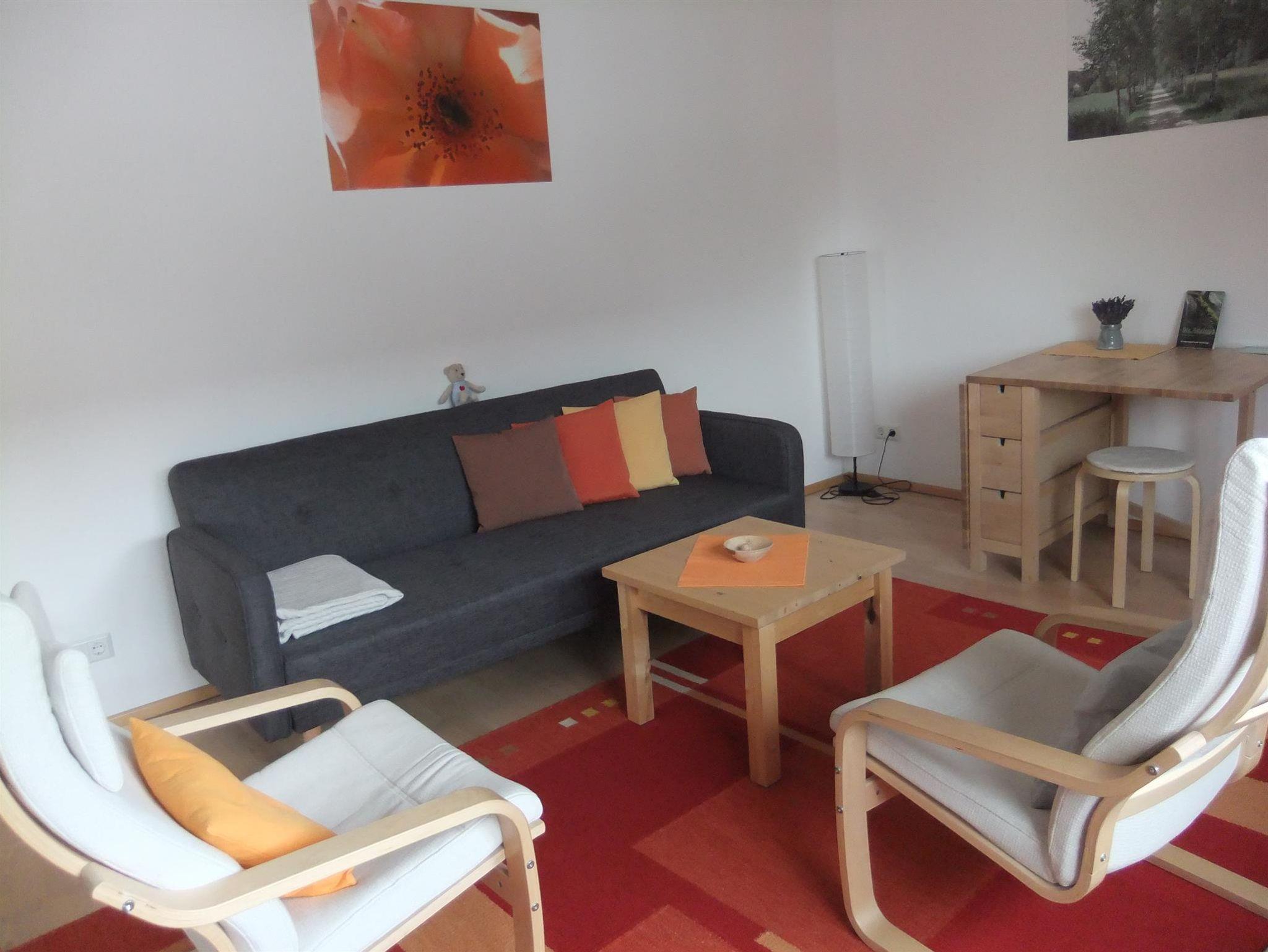 Neu eingerichtete Ferienwohnung mit großem Wohnzimmer. Moderne Küche mit Geschirrspülmaschine,Backofen mit Mikrowelle. Das Schlafzimmer verfügt über ein Doppelbett. Im Wohnzimmer steht ein Schlafsofa. Fernseher, Radio/CD-Player, Internetanschluss. Das Badezimmer ist mit mit einer begehbaren Dusche ausgestattet. Haarföhn u. Handtücher vorhanden. Die Zimmer haben Holzparkettböden u. Fußbodenheizung.