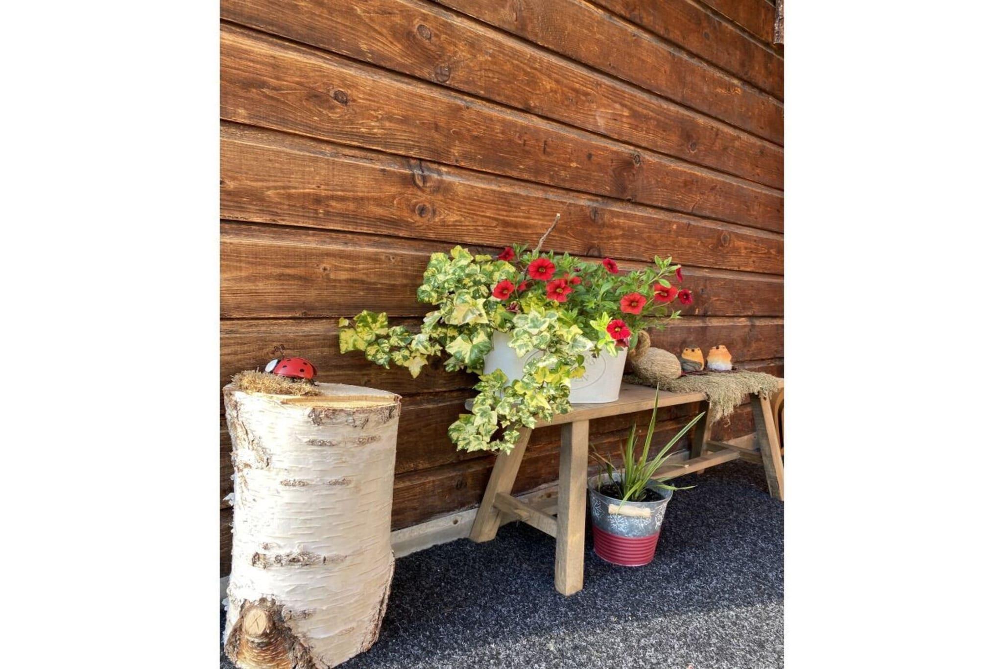 Stueetage: (entre, Stue(enkeltsovesofa, Fjernsyn, radio, CD-afspiller), Køkken(spisebord, kogeplade, elkedel, brødrister, kaffemaskine, ovn, mikrobølgeovn, opvaskemaskine , køleskab), soveværelse(enkeltseng), soveværelse(enkeltseng), soveværelse(dobbeltseng), badeværelse(bruser, håndvask, føntørrer, Håndklæder inkl.), toilet, pulterkammer) terrasse, havemøbler, parkering, Parasol
