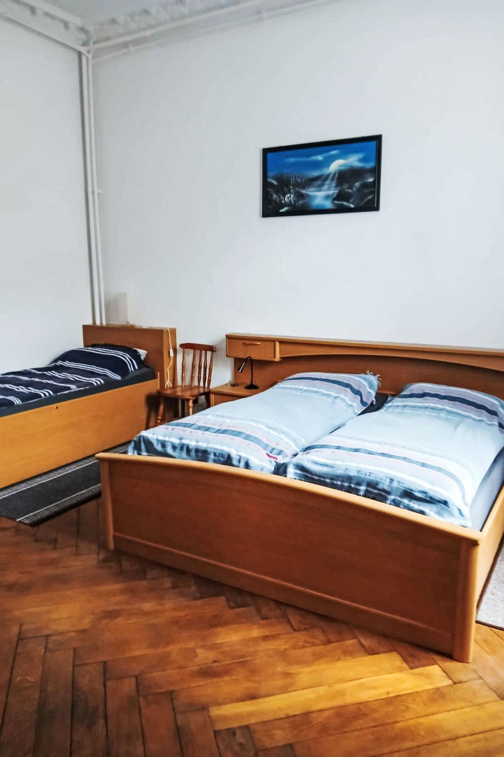 "Appartement mit eigenem Parkplatz 2", 2-room apartment 79 m2. Living room with 1 double sofabed and TV. 1 room with 1 bed and 1 double bed. Kitchen (oven, dishwasher, 4 ceramic glass hob hotplates, toaster, kettle, microwave, electric coffee machine) with dining table. Shower/WC. Gas heating. Facilities: washing machine, dryer, baby cot. Internet (WiFi, free). Please note: non-smokers only. Smoke alarm. 63020070523