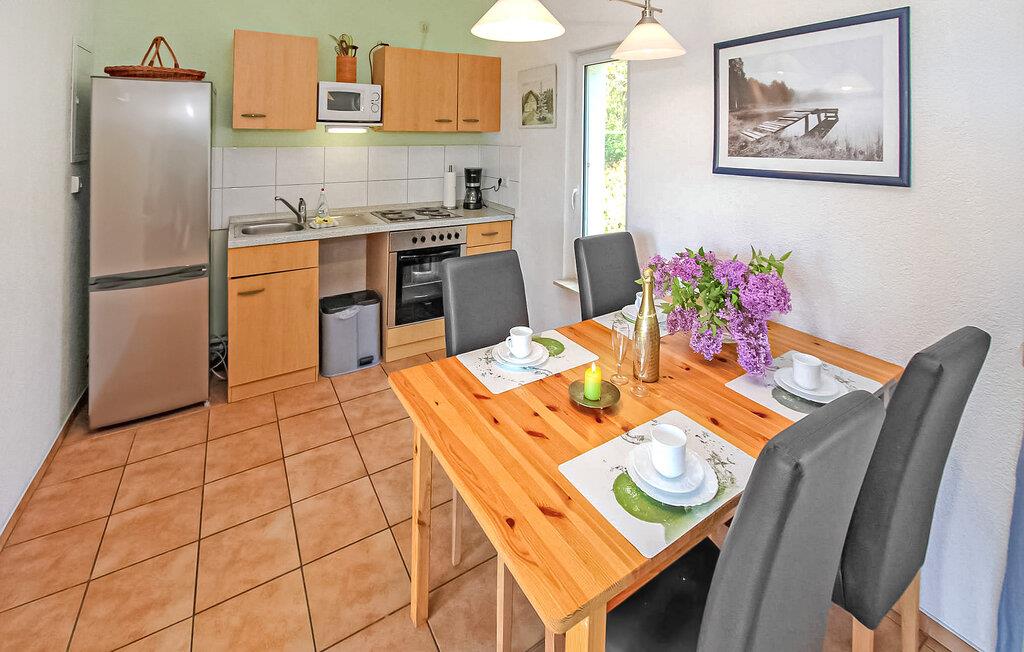 Det 70 kvm store feriehus er fritliggende på en 2000 kvm, delvist indhegnet ejendom ved vandet direkte ved søen Loppiner. Ved søen er der to bade- og fiskebroer og en lille legeplads. Meget smukke, skovklædte omgivelser, der giver mulighed for observation af dyreliv direkte fra ejendommen. Feriehuset har to boligplaner. I stueplan er der opholdsstue (polstrede møbler, fladskærms-tv), åbent tekøkken (elkomfur med ovn, køleskab med fryser, mikroovn, diverse køkkenmaskiner) samt badeværelse med brus/toilet. På øverste etage er der to soveværelser (1 x dobbeltseng, 1 x 2 enkeltsenge som sammenhængende rum). Boligen opvarmes med pejs (brænde inkluderet). Der er to møblerede terrasser, liggestole, en grill, opbevaringsplads til cykler, en robåd og en parkeringsplads. Den samlede pris inkluderer slutrengøring, sengelinned, vand- og energiforbrug samt WiFi. Medbring venligst dine egne håndklæder. Et kæledyr op til 40 cm højt er tilladt i denne ejendom, ingen katte. Loppin, det lille distrikt Jabel (3 km), ligger i en naturskøn beliggenhed i naturparken Nossentiner-Schwinzer Heide. Det omkringliggende område er præget af omfattende skovområder med et enormt dyreliv og talrige søer. Området kan nemt udforskes på cykel. Cykelstien Berlin-København går gennem Loppin. Damerower Werder bison-indhegning ligger 6 km derfra. Waren (Müritz) spa, turistcentret i Mecklenburg Lake District, kan nås efter 14 km. Loppiner See, der ligger i lokalområdet, betragtes som et fremragende fiskevand med en fremragende bestand af store karper .