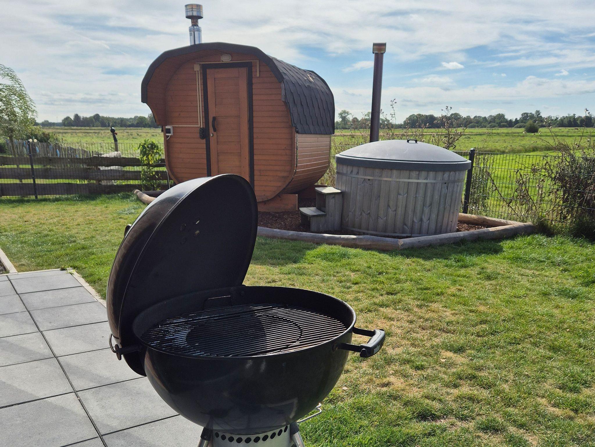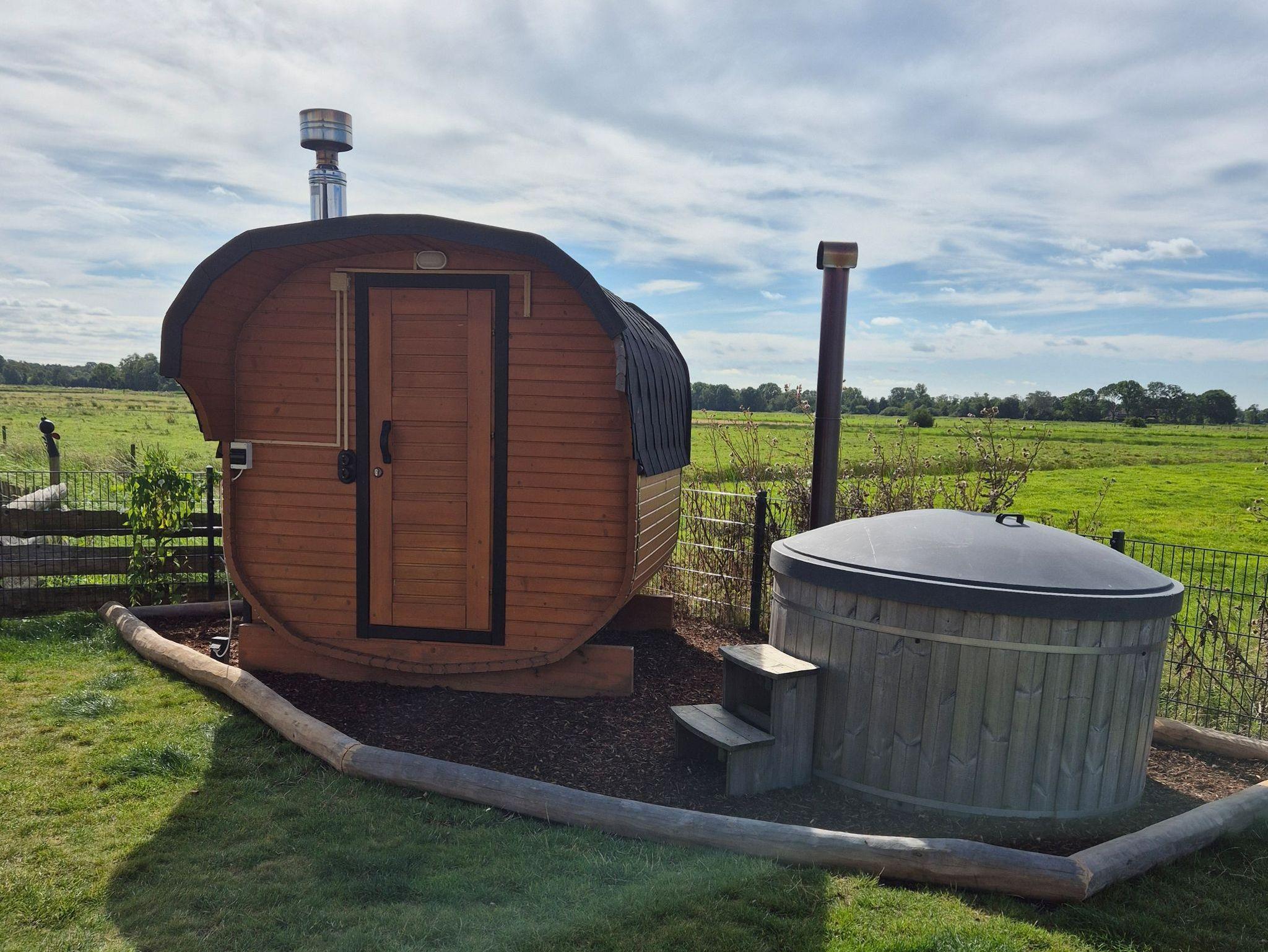 Als besonderes Highlight ist im Garten eine eigene große Sauna und ein beheizbares Badefass zu finden.