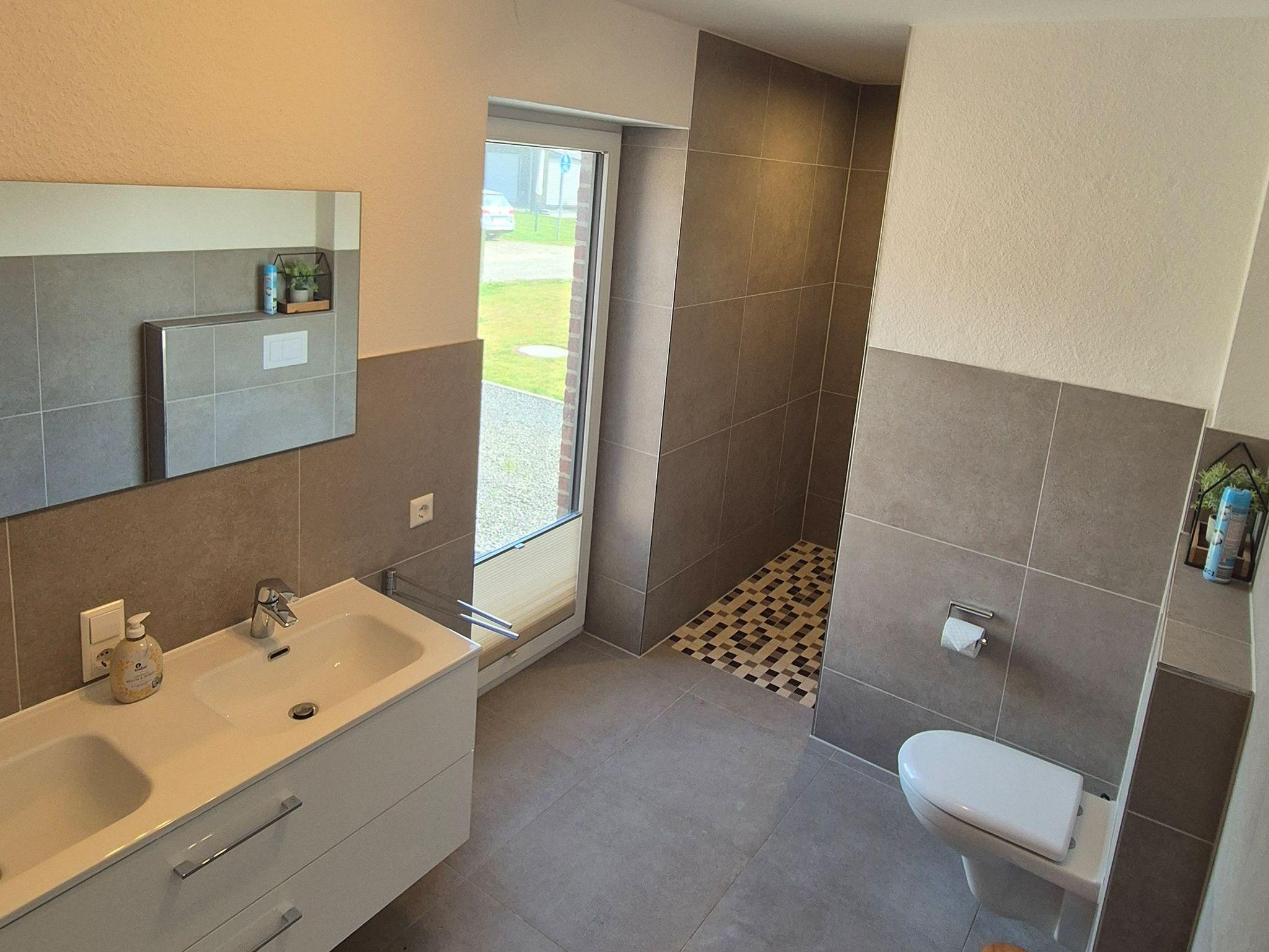 • 1 großes Badezimmer mit bodengleicher Dusche