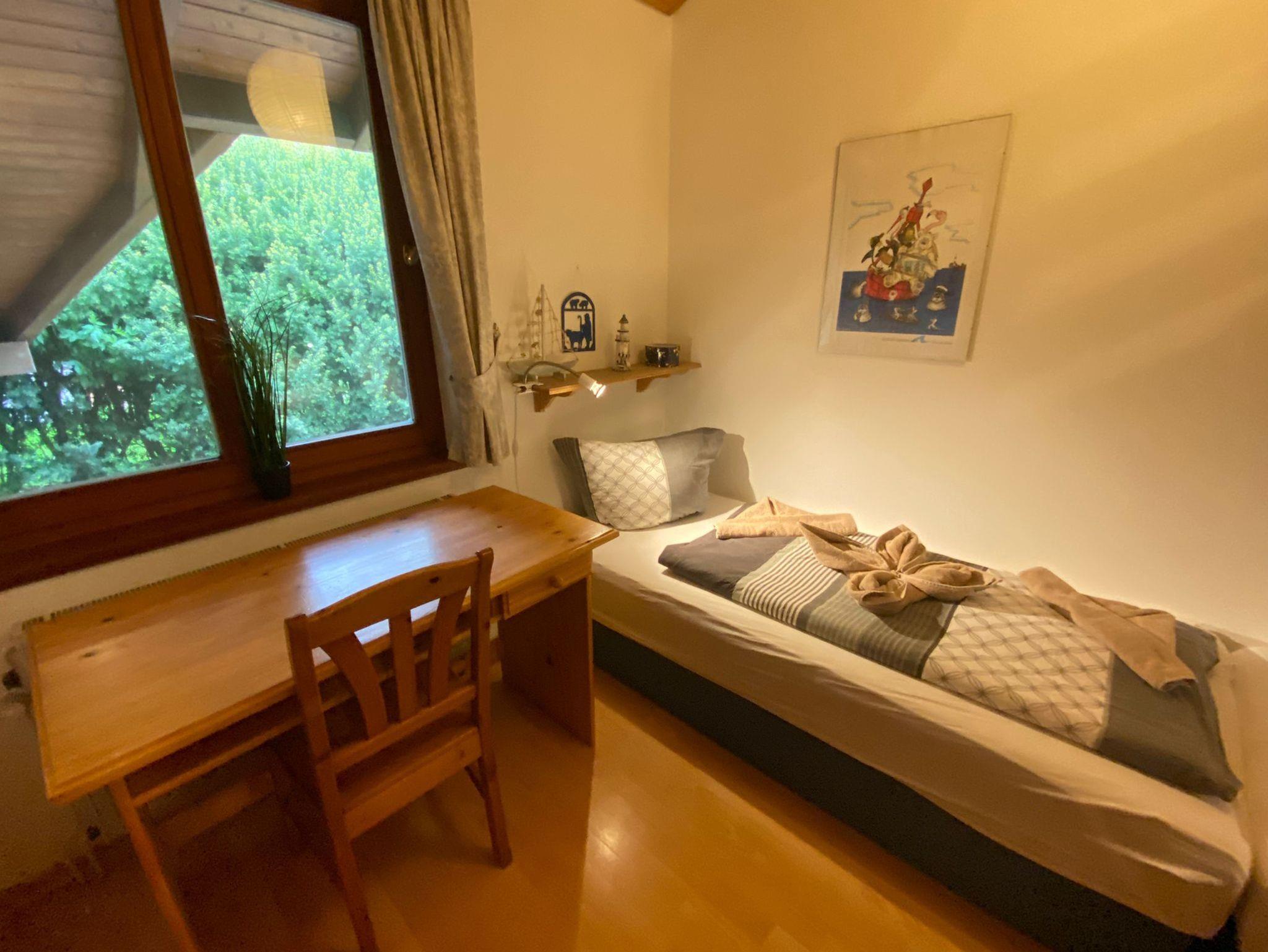 Genießen Sie den Ruhe. Ihre Kinder können auf der teilweise umzäunten Wiese spielen, die große Terrasse ist möbliert und lädt zum Entspannen ein; bis zu zwei Fahrzeuge haben Platz im Dachunterstand.