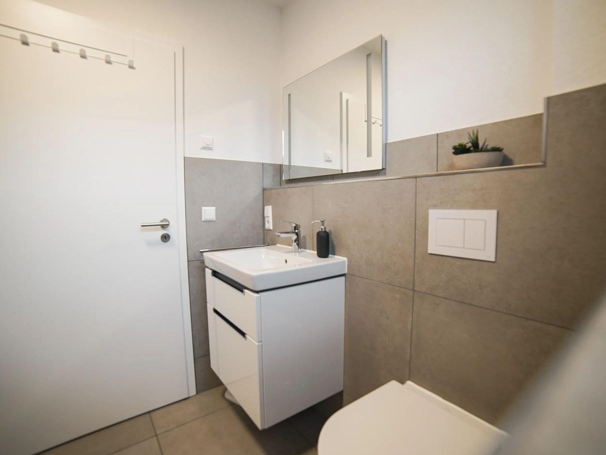 • 1 großes Badezimmer mit Dusche
