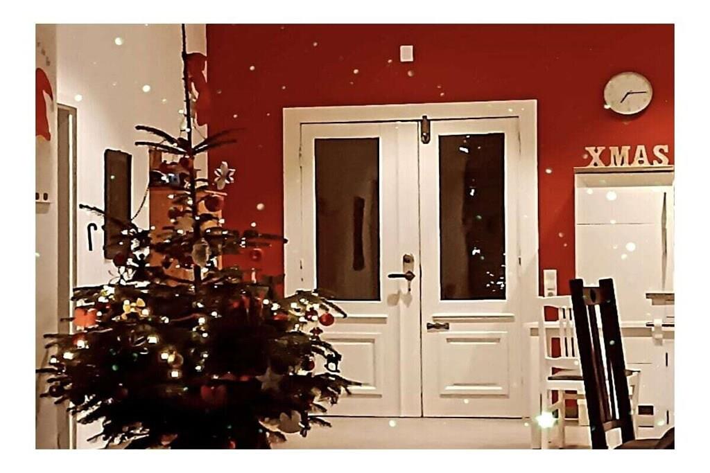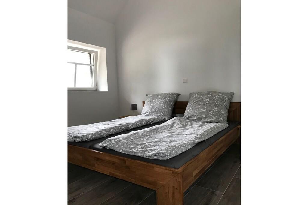 Stueetage: (stue / spisestue(, Fjernsyn, spisebord, varme), soveværelse(, dobbeltseng), soveværelse(, dobbeltseng)) På 1. etage: (soveværelse(dobbeltseng)) , , Internetadgang, vaskemaskine, parkering, tørreskab