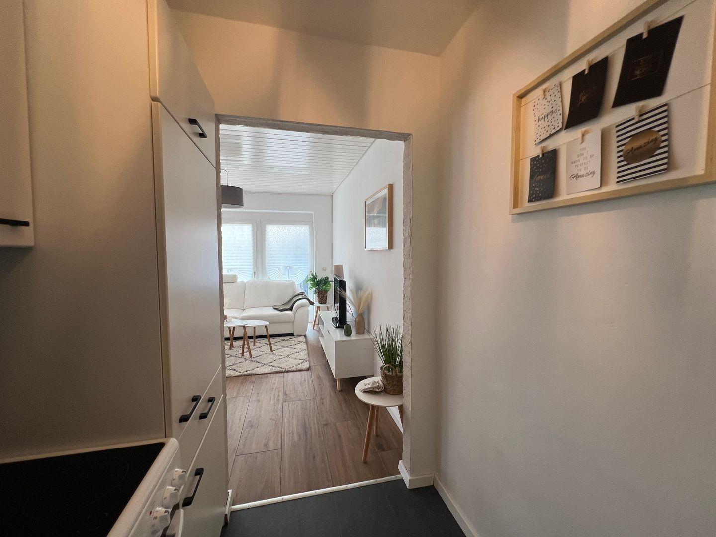 Im modern eingerichteten Wohnbereich erwartet Sie eine gemütliche Sofaecke mit Flachbild-TV und kostenlosem WLAN, das einen schnellen Internetzugang ermöglicht. Der Essbereich mit Esstisch befindet sich direkt neben der offenen, vollständig ausgestatteten Küche. Diese bietet unter anderem einen 4-Platten-Herd, Elektro-Backofen, Kühlschrank mit Gefrierfach, Mikrowelle, Geschirrspüler, Kaffeemaschine, Wasserkocher, Toaster sowie umfangreiche Küchenutensilien und Geschirr. Haushaltshelfer wie Bügeleisen, Bügelbrett, Wäscheständer und Staubsauger sind ebenfalls vorhanden.