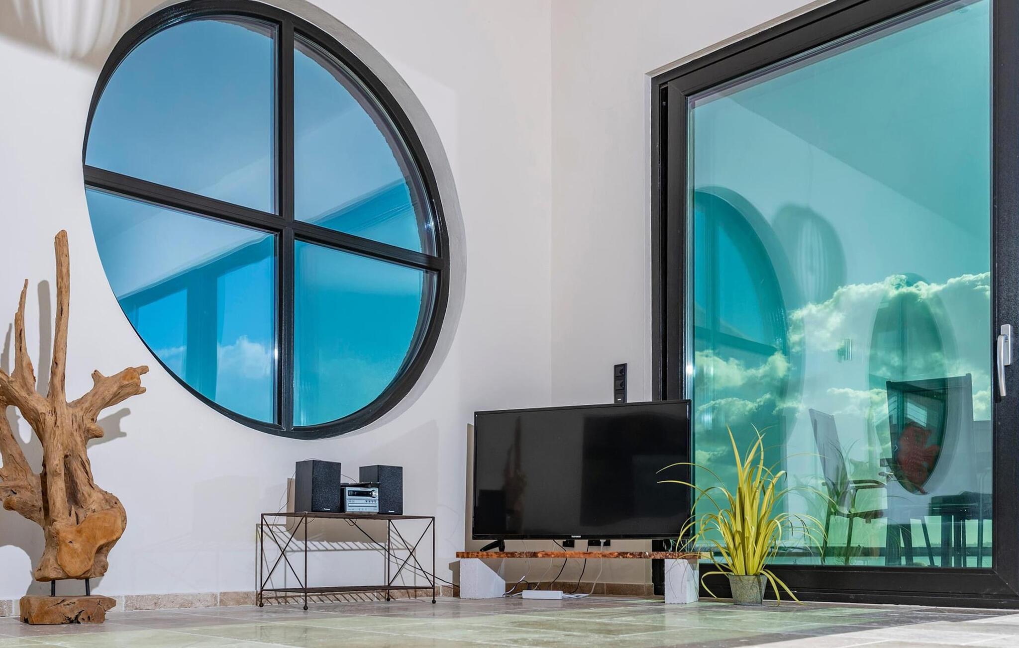 Den unikke arkitektur med imponerende højt til loftet og gulv-til-loft vinduer skaber en uforglemmelig ferieoplevelse, fordi vandet er tæt nok til at røre ved. Den biologiske konstruktion med kalkpuds sikrer et behageligt indeklima, mens naturstensgulve af italiensk, let travertin er jordforbindelse i egentlig forstand. Møblerne er af høj kvalitet og designet er unikt, natursten, mørkt træ og naturlige materialer som rattan og læder kendetegner denne forfriskende kolonistil med souvenirs fra hele verden. Hvert værelse har også en anden naturlig vægfarve. De helt spejlede vinduer skaber maksimal privatliv.