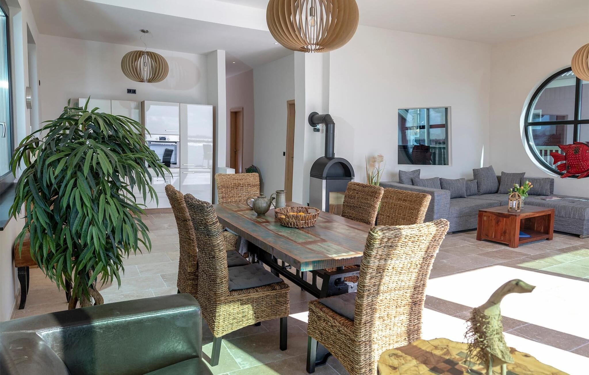 Det åbne køkken-alrum lader intet tilbage at ønske, da det er fuldt udstyret til at tilberede lækre feriemåltider.