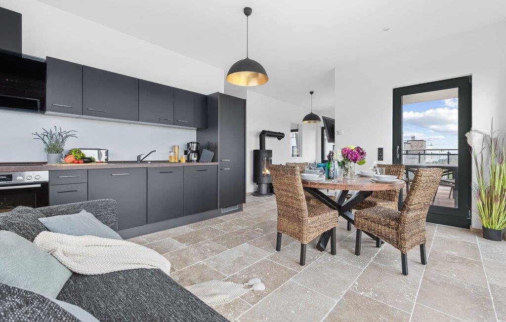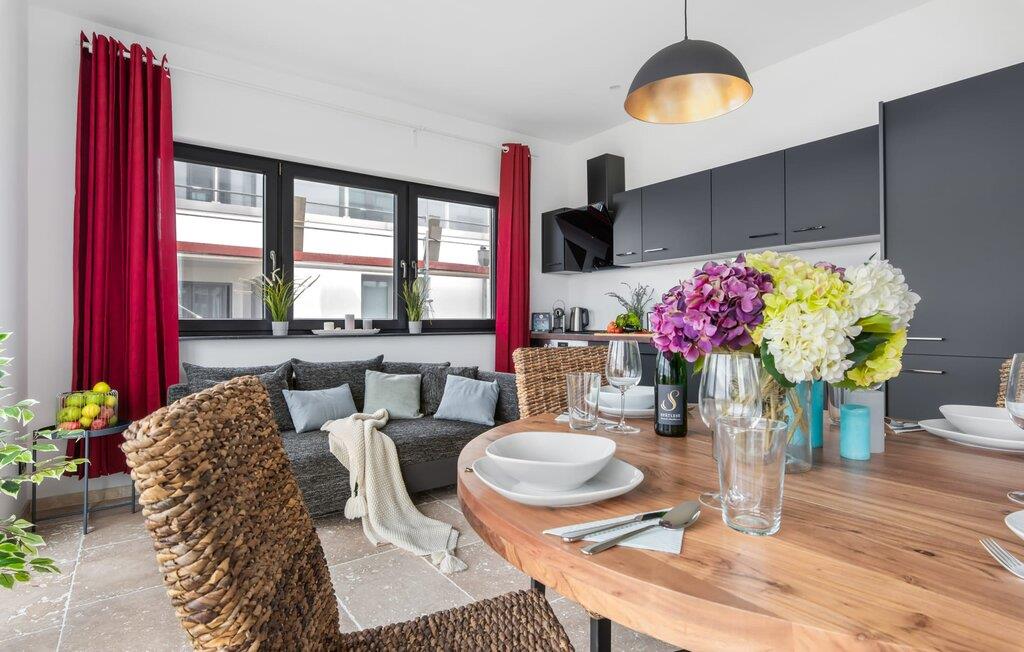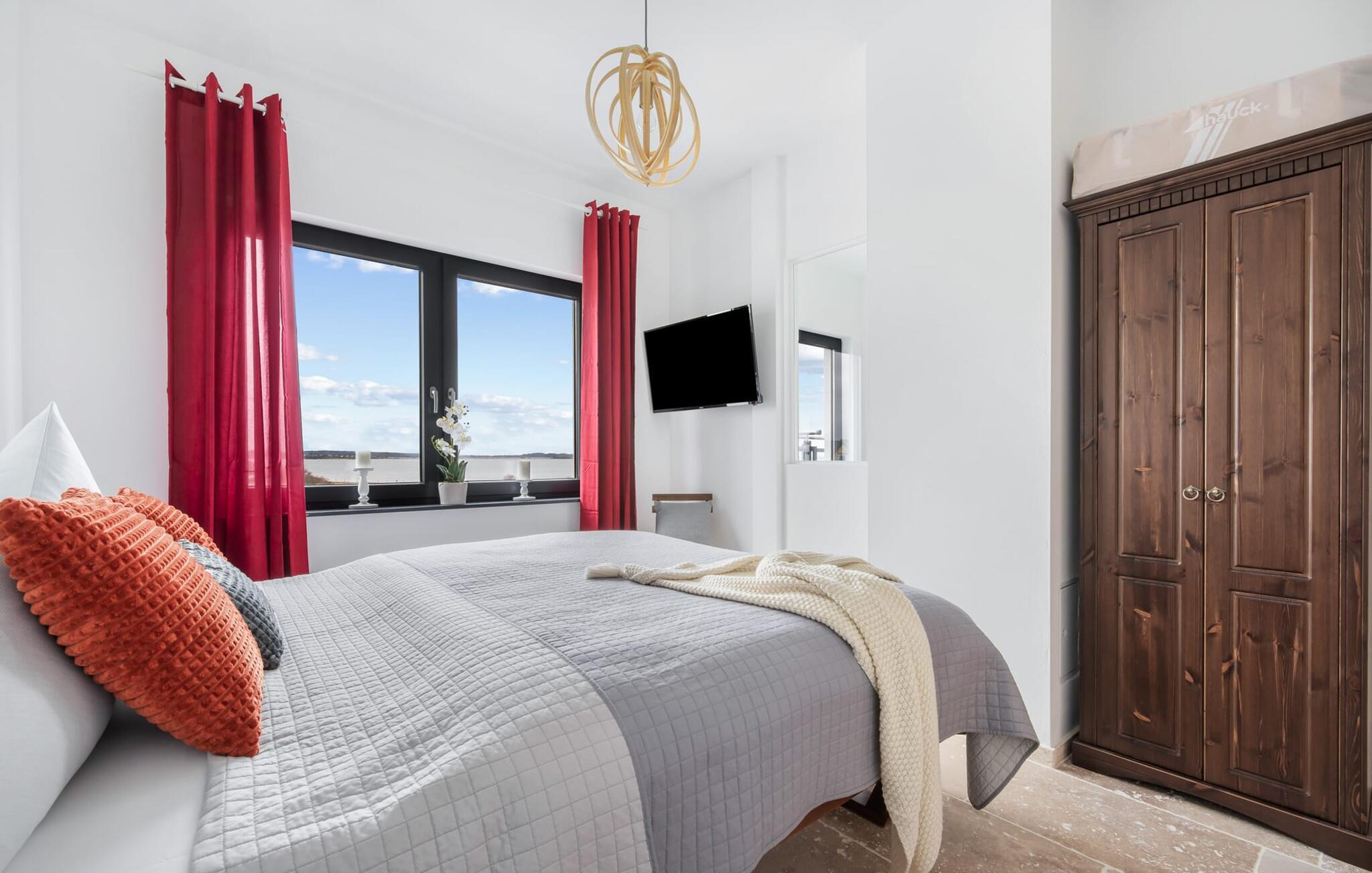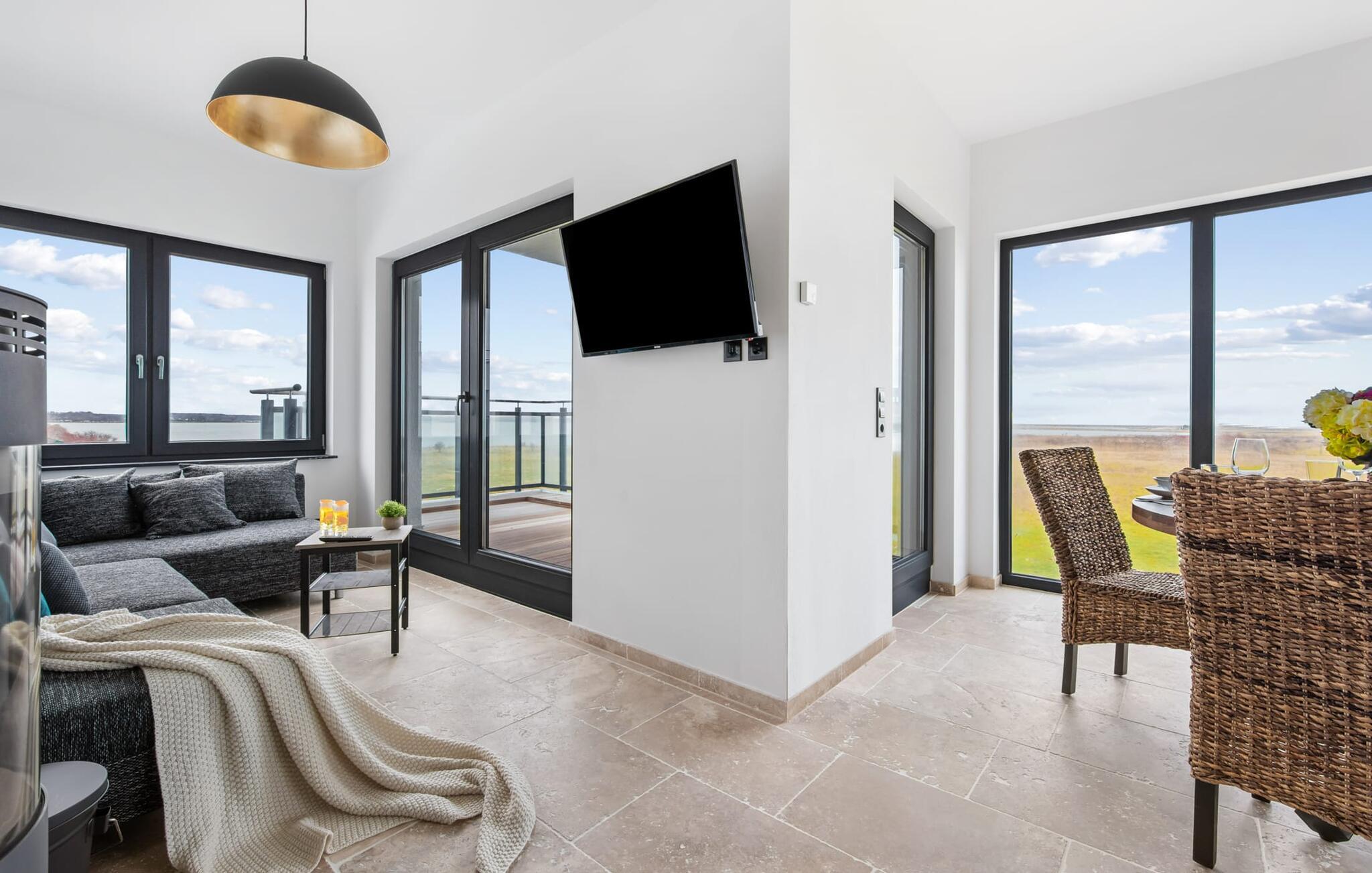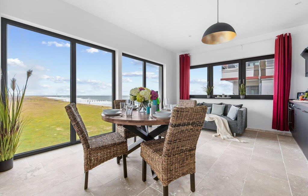 Enhver, der stræber efter afslapning i en eksklusiv stil, vil finde deres nye yndlingsferiehus i Jazz Ellington-ferielejligheden. Mottoet her er: Kom og hav det godt. Rummelig og trinløs i ét plan, designet med en imponerende udsigt over Slien og Østersøen, denne lys-oversvømmede oase af velvære byder jer velkommen direkte i naturreservatet. Fårene og de vilde fugle, der lever i det tilstødende naturreservat, kan observeres tæt på naturen, hvor fårene kommer helt op til hegnslågen. Denne idyl rundes yderligere af af udsigten til fyret. Den hvide sandstrand i feriestedet ved Østersøen kan nås på blot et minuts gang. Den rummelige stue/spisestue med tilhørende stor loggia byder på en fantastisk udsigt over naturen og Østersøens bølger. Naturstensgulve lavet af let italiensk travertin og gulvvarme i hele lejligheden giver sammen med det økologiske byggekoncept lavet af mursten og kalkpuds det højeste niveau af boligkomfort. Takket være gulv-til-loft vinduer bliver ferielejligheden oversvømmet med lys. Det fuldt udstyrede Bosch-mærket køkken-alrum tilbyder alle bekvemmeligheder. Åbent designet, kan I endda se Slien og Østersøen, mens I laver mad. Den store loggia byder på afslapning og spisning al fresco med den smukkeste udsigt. Hvad vil I have af havet? To soveværelser giver plads til fire voksne til at sove og drømme. Det store soveværelse med udsigt over Slien er udstyret med en dobbeltseng og et fladskærms-tv. Det andet soveværelse har to enkeltsenge. En sovesofa tilbyder ekstra overnatning til en anden person. Bruserummet i natursten lavet af brasiliansk skifer har en finsk sauna, en stor regnbruser og håndlavede flodstensvaske. Ægte SPA-øjeblikke kan opleves her! Et gæstetoilet giver ekstra komfort. Takket være gulvvarme og pejs er lejligheden ideel til enhver sæson. Der er en privat parkeringsplads lige foran huset. Der er 6 fælles cykelstativer foran ferielejligheden. Vores favoritsted: Se solen gå ned fra loggiaen med en sundowner. I vil aldrig herfra igen...! Bemærk venligst: OstseeResort Olpenitz er meget populært, og der bygges fortsat i parken. Ikke desto mindre kan I se frem til en 5-stjernet standard og et førsteklasses ophold. Byggeaktiviteterne kommer ikke til at forstyrre jer på ferien, og derfor gives der ikke yderligere afslag i prisen.
