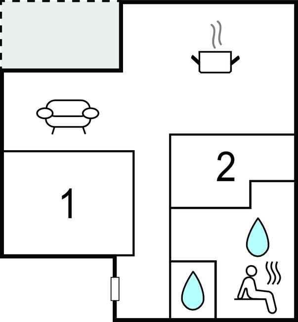 Opholdsstue/køkken - 1 Soveplads. (Sofa, madras eller lignende).